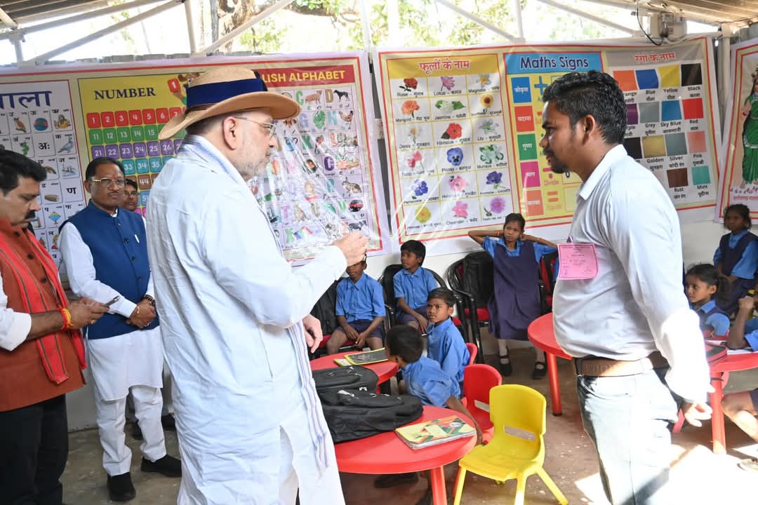 बीजापुर जिले के घोर नक्सलगढ़ गुडंम में केंद्रीय गृहमंत्री अमित शाह ने लगाई ग्रामीणों की चौपाल