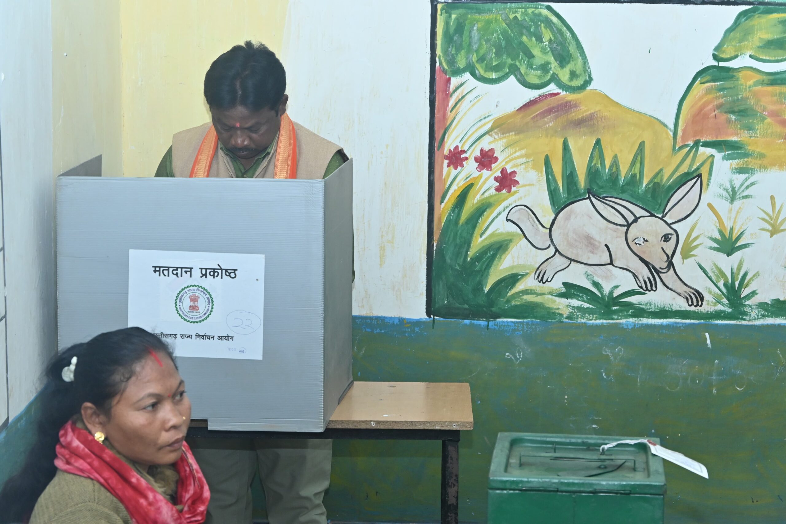बस्तर सांसद महेश कश्यप ने त्रिस्तरीय पंचायत चुनाव में कलचा स्थित पूर्व माध्यमिक शाला में किया मतदान