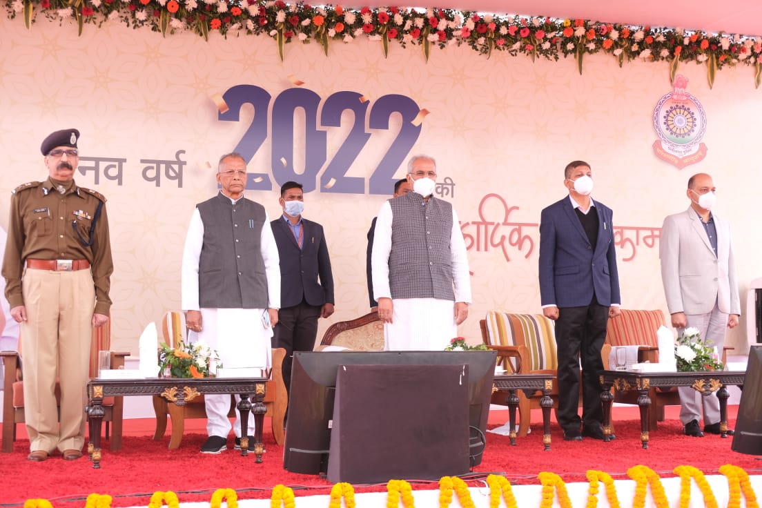 रायपुर :- मुख्यमंत्री भूपेश बघेल ने आज राजधानी रायपुर पुलिस परेड ग्राउंड में पुलिस जवानों के साथ नव वर्ष कार्यक्रम में हिस्सा लिया। इस अवसर पर उन्होंने छत्तीसगढ़ पुलिस और अर्धसैनिक बल के जवानों को नव वर्ष की शुभकामनाएं देते हुये कहा कि छत्तीसगढ़ राज्य में किसानों और जवानों दोनों की जय-जयकार हो रही है। पिछले दो वर्ष सभी लोग कोरोना संकट से जूझते रहे, मैं उम्मीद करता हूं कि आने वाला वर्ष सभी के लिये आरोग्यता और समृद्धि लेकर आये। उन्होंने कहा कि कड़ाके की ठंड में हमारे जवान रातभर गश्त करते हैं, तब हम सब चैन की नींद सो पाते हैं।