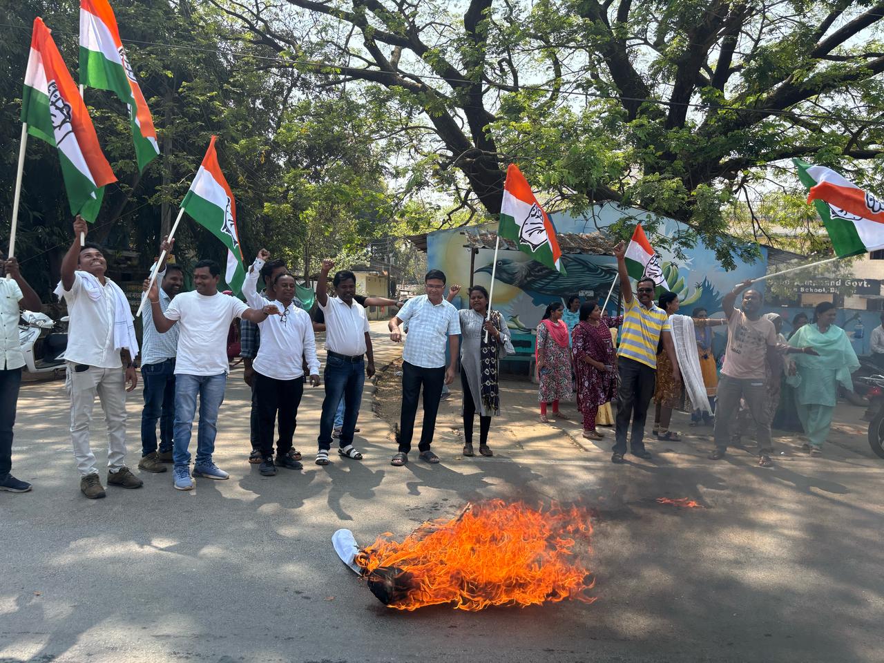 कांग्रेसियों पर ई.डी. व केंद्र की भारतीय जनता पार्टी सरकार के तानाशाहीपूर्ण कार्यवाही के विरोध में कांग्रेस ने किया पुतला दहन