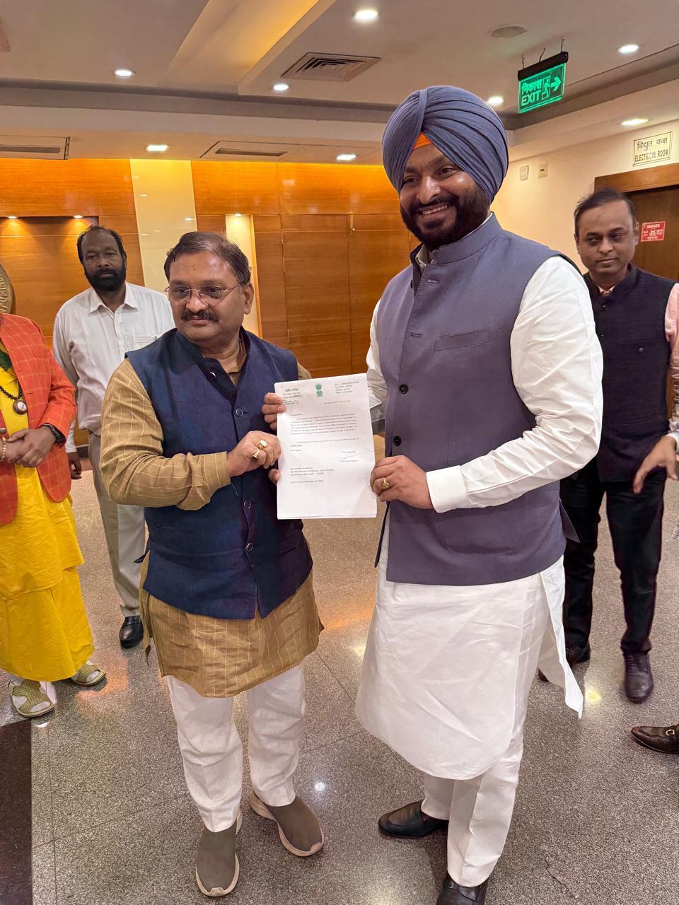 कवर्धा :- राजनांदगांव लोकसभा क्षेत्र के सांसद श्री संतोष पांडेय ने नई दिल्ली में केंद्रीय रेल राज्य मंत्री श्री रवनीत सिंह जी से सौजन्य भेंट कर छत्तीसगढ़ में रेल सुविधाओं के संबंध में चर्चा की। इस अवसर पर भारत की “अतिथि देवो भवः” की परंपरा को निभाते हुए रायपुर स्थित पूज्य शदाणी दरबार में पाकिस्तान के सिंध प्रांत से पधारने वाले हिन्दू दर्शनार्थियों की सुविधा हेतु संचालित ट्रेन में अतिरिक्त कोच की व्यवस्था करने का निवेदन कर पत्र सौंपा। माननीय मंत्री जी द्वारा विषय को संज्ञान में लेते हुए जल्द ही इसके लिए प्रयास करने का आश्वासन दिया। पूज्य शदाणी दरबार हमारे छत्तीसगढ़ के प्रमुख धार्मिक स्थलों में से एक हैं, जहां दर्शन हेतु केवल भारत ही नहीं अपितु विदेशों से भी श्रद्धालुओं का आगमन होता है ऐसे में उनकी सुविधाओं के लिए प्रयास करना हमारा कर्तव्य है।