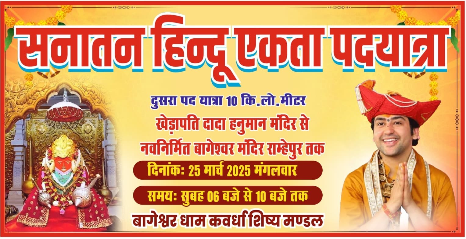 कवर्धा में 25 मार्च को होने वाली है बागेश्वर धाम सरकार के निर्देशनुसार सनातन हिंदू एकता पदयात्रा