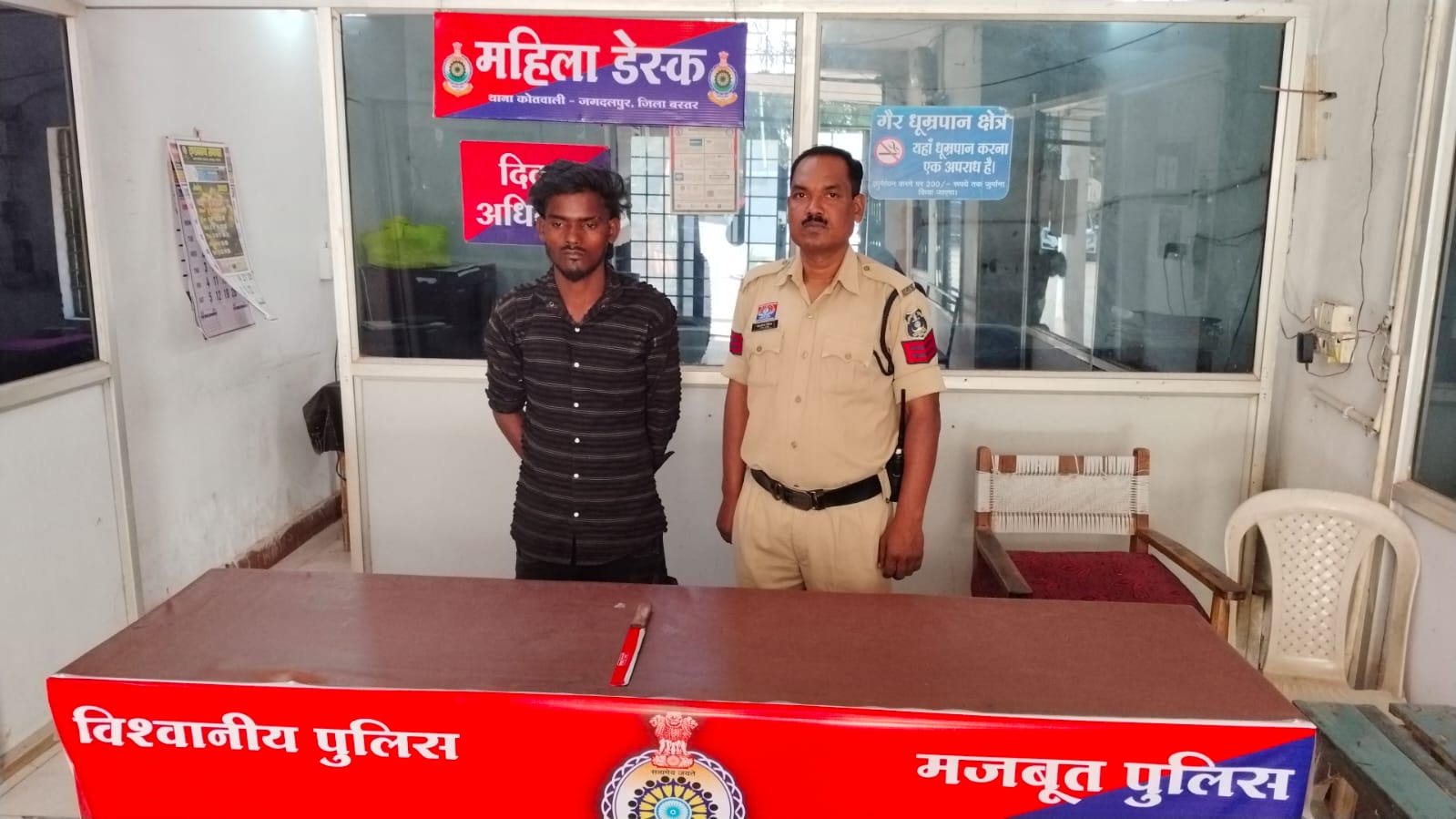 जगदलपुर। पुलिस अधीक्षक शलभ कुमार सिन्हा के नेतृत्व में बस्तर पुलिस द्वारा अपराधी तत्वों के विरूद्ध लगातार कार्रवाई की जा रही है। इसी तारतम्य में आम जगह पर धारदार चाकू लेकर लोगो को डराने धमकाने वाले आरोपी को गिरफ्तार किया गया है।