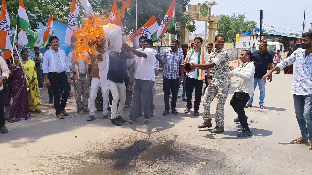 दुर्ग में घटी दुष्कर्म की घटना के विरोध में कांग्रेसियों ने मुख्यमंत्री और गृहमंत्री का फूंका पुतला