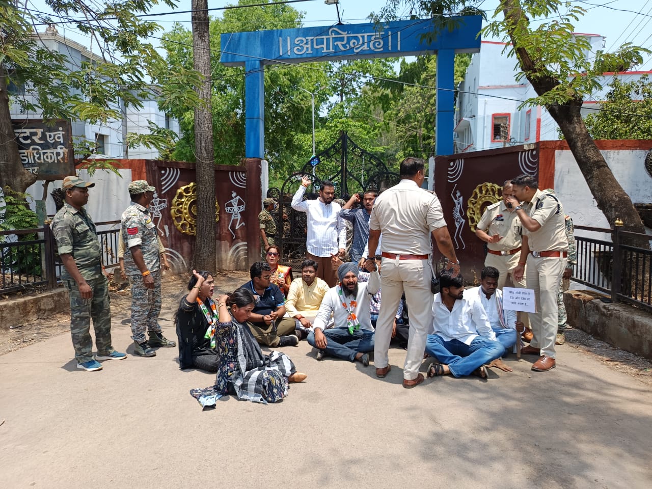 शहर जिला कांग्रेस अध्यक्ष सुशील मौर्य ने कहा कि मुख्यमंत्री विष्णुदेव साय और भाजपा सरकार इंद्रावती विकास प्राधिकरण के कार्यालय में ताला लगाकर शहर के आलीशान होटल में बैठक करते हैं। भाजपा सरकार बस्तर की खनिज सम्पदा अपने पूंजीपति मित्रों को सौंपने जा रही है। बस्तर की जीवनदायिनी इंद्रावती नदी सूखने के कगार पर है।बस्तर के आदिवासियों के जल, जंगल, जमीन को उजाड़ कर बस्तर की सुंदरता के साथ खिलवाड़ यह सरकार कर रही है। बस्तर के लोंगों का लोकतांत्रिक अधिकार खतरे में है। हमारे जल, जंगल, जमीन हमारी संस्कृति पर सरकार और सरकार के पूंजीपति मित्रों की नजर लग चुकी है। इंद्रावती नदी पूरी तरह से सूख चुकी है, पिछले कई दिनों से इंद्रावती से सटे किसान इंद्रावती नदी में पानी की मांग को लेकर आंदोलनरत हैं, परंतु डबल इंजन की सरकार किसानों की मांग को अनसुना कर रही है। आज हाथ में काले झंडे लिए कांग्रेस पार्टी द्वारा शांतिपूर्ण आंदोलन करने निकले कार्यकर्ताओं को बलपूर्वक रोका गया और अलग अलग थानों में नज़रबंद किया गया जिसका कांग्रेस पार्टी पुरजोर विरोध करती है। इस दौरान ग्रामीण जिला कांग्रेस अध्यक्ष प्रेमशंकर शुक्ला, पूर्व विधायक रेखचंद जैन, अतिरिक्त शुक्ला, हनुमान द्विवेदी, कविता साहू, रविशंकर तिवारी, जाहिद हुसैन, सेमियल नाथ, सुषमा सुता, शहर अध्यक्ष महिला कांग्रेस लता निषाद, चम्पा ठाकुर, ब्लॉक अध्यक्ष सहदेव नाग, अल्पसंख्यक अध्यक्ष रोजविन दास, युकां अध्यक्ष अजय बिसाई, आदित्य बिसेन, एनएसयूआई अध्यक्ष विशाल खंबारी, पार्षद सूर्यापानी, गौतम पाणिग्रही, कोमल सेना, अफरोज बेगम, लोकेश चौधरी, जस्टिन भवानी, अनुराग महतो, विक्रांत सिंह, कमलेश पाठक, ललिता राव, शादाब अहमद,एस नीला, ज्योति राव, अंकित सिंह, लव मिश्रा, तरणजीत सिंह, सायमा अशरफ,सुनीता दास,मनिता राउत, गोपाल शर्मा, राजेश साहू, फूलसिंह बघेल, राजेंद्र पटवा, भारत बघेल, मनोज, शामकुमारी ध्रुव, सलीम जाफर, अभिषेक अवस्थी, हर्षवर्धन शर्मा, नितेश जोशी, अंकित नागवंशी, तन्मय चौहान, रुद्रप्रताप, रक्षित, रेहान रिजवी, अंशु नाग, कुणाल पांडे, नरेंद्र, खीरेंद्र यादव, समीर खान आदि मौजूद रहे।