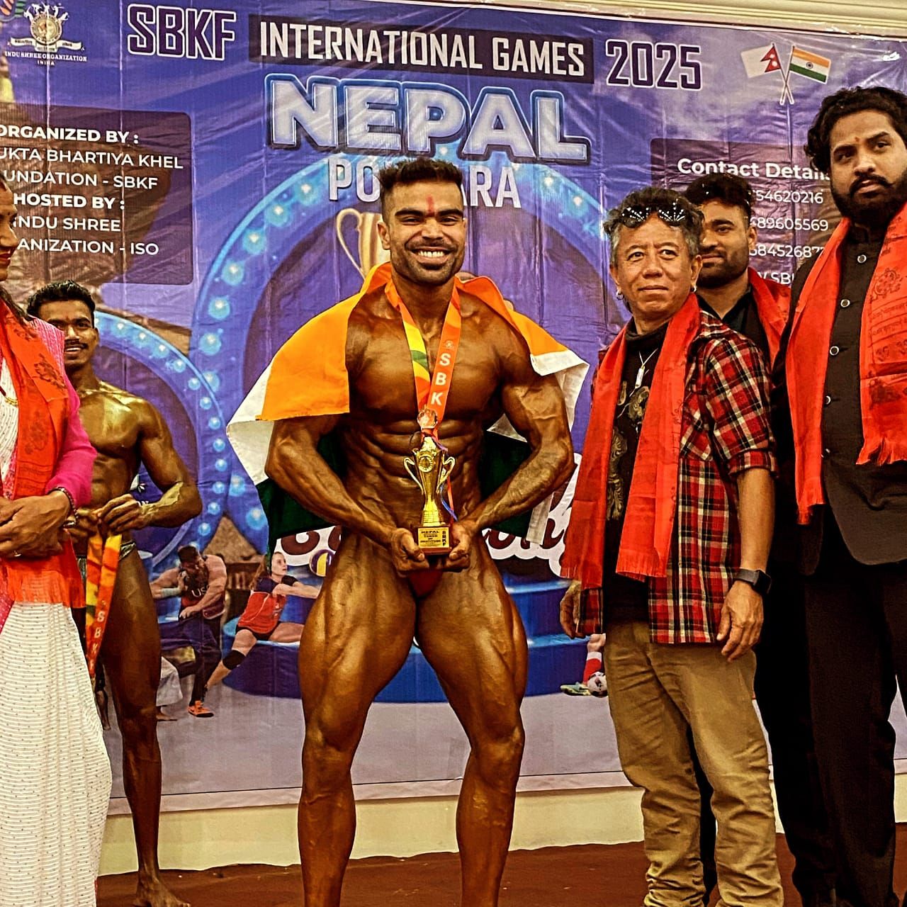 कवर्धा :- छत्तीसगढ़ के कबीरधाम जिले के चार होनहार खिलाड़ियों ने नेपाल के पोखरा शहर में आयोजित अंतरराष्ट्रीय बॉडीबिल्डिंग एवं वेटलिफ्टिंग प्रतियोगिता में दमदार प्रदर्शन करते हुए भारत का परचम लहराया है। अंतरराष्ट्रीय संयुक्त भारतीय खेल संघ द्वारा आयोजित इस प्रतियोगिता में भारत, नेपाल, पाकिस्तान, भूटान, श्रीलंका, बांग्लादेश और म्यांमार समेत सात देशों के 300 से अधिक खिलाड़ियों ने भाग लिया।