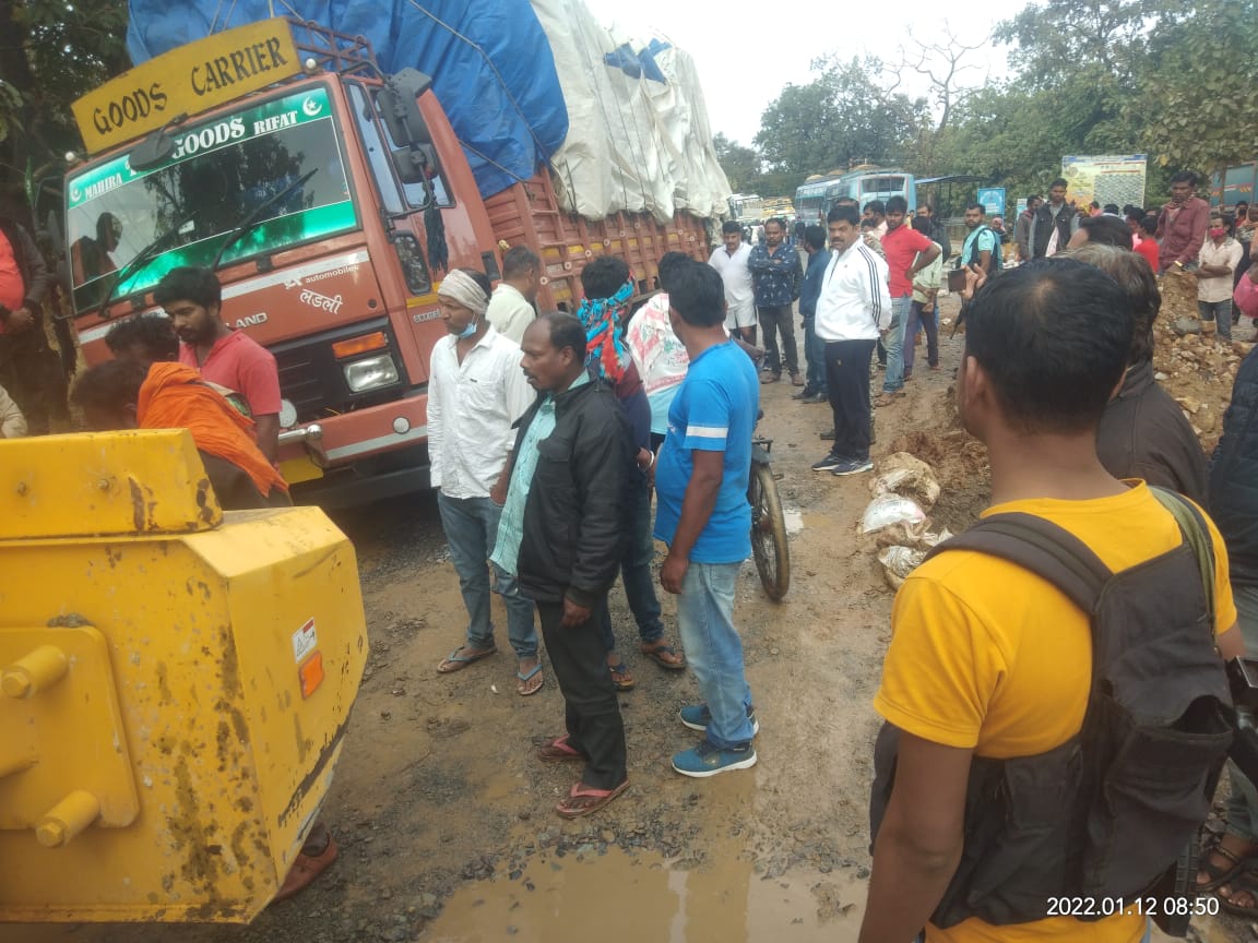 ट्रक के फंसने से एनएच 63 हुआ जाम, जानकारी मिलते ही विधायक ने मौके पर पहुंच मार्ग करवाया बहाल