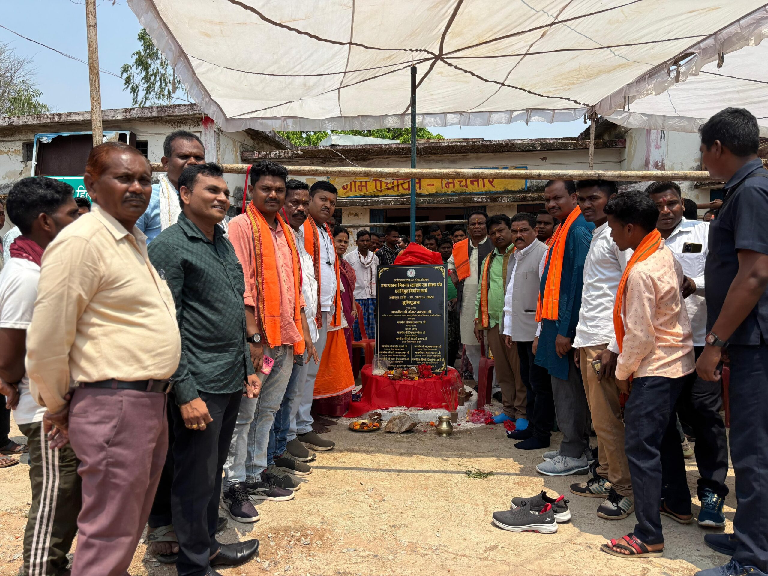 चित्रकोट विधानसभा क्षेत्र अंतर्गत लोहंडीगुड़ा मंडल की विभिन्न ग्राम पंचायतों में जल संसाधन विभाग द्वारा स्टाप डेम निर्माण सह सह सोलर पंप स्थापना एवं विद्युत निर्माण कार्यों का आज भूमि पूजन संपन्न हुआ।bबस्तर सांसद महेश कश्यप व चित्रकोट विधायक विनायक गोयल ने आज चित्रकोट विधानसभा क्षेत्र के अंतर्गत अनेक ग्राम पंचायतों के विभिन्न विकास कार्यो का भूमिपूजन कर क्षेत्रवासियों को सौगात दी है। 878.76 लाख रुपये की लागत से होने वाले इन विकास कार्यों का शुभारंभ बस्तर सांसद महेश कश्यप एवं चित्रकोट विधायक विनायक गोयल द्वारा विधिवत पूजा-अर्चना कर किया गया। चित्रकोट विधानसभा के ग्राम मिचनार के मगर पखना मिचनार स्टॉप डैम सह सोलर पंप एवं विद्युत निर्माण कार्य लागत 2 करोड़ 82 लाख 55 हजार के विकास कार्यो का भूमिपूजन किया गया है। ग्राम पंचायत आंजर क्षेत्र में आंजर स्टॉप डैम कम काजवे सह सोलर पंप एवं विधुत निर्माण कार्य राशि 2 करोड़ 93 लाख 41 हजार रु के कार्यो का का भूमिपूजन कर क्षेत्रवासियों को सौगात दी गई है। चित्रकोट विधानसभा क्षेत्र के उसरीबेड़ा हाई स्कूल में शेड निर्माण और सामुदायिक भवन निर्माण कार्य का भूमिपूजन आज सांसद व विधायक ने किया। इस दौरान बस्तर सांसद ने कहा कि ग्रामीण क्षेत्र का विकास ही हमारे विकसित भारत का आधार है। सड़क बिजली पानी जैसी मूलभूत सुविधाओं का विस्तार करने के लिए महज सवा साल में डबल इंजन की भाजपा सरकार द्वारा अभूतपूर्व उपलब्धियां अर्जित की गई हैं और आगे भी यह विकास यात्रा दुगुनी रफ्तार से जारी रहेगी। डबल इंजन की सरकार में बस्तर, छत्तीसगढ़ संवर रहा है।सांसद श्री कश्यप ने कहा कि प्रधानमंत्री मोदीजी के आत्मनिर्भर भारत और गांव की समृद्धि के संकल्प को साकार करने हेतु ये परियोजनाएं एक महत्वपूर्ण कदम हैं। चित्रकोट विधायक विनायक गोयल ने कहा कि चित्रकोट विधानसभा क्षेत्र के निवासियों को लगातार सरकार सौगात दे रही है। क्षेत्रवासियों की सेवा हेतु सदैव तत्पर रहूंगा। सड़क, बिजली, पानी जैसे सभी मूलभूत सुविधाएं जनता को मुहैया कराना मेरा परम कर्तव्य है। विधायक श्री गोयल ने कहा कि लोहंडीगुड़ा क्षेत्र में यह एक ऐतिहासिक पहल है, जो आने वाले समय में ग्रामीण अर्थव्यवस्था को मजबूती प्रदान करेगी। इस अवसर पर जिला पंचायत उपाध्यक्ष बलदेव मंडावी, जनपद अध्यक्ष पदमा कश्यप, जनपद उपाध्यक्ष बसंत कश्यप, जिला पंचायत सदस्य चंद्रभान कश्यप, पूर्व विधायक लच्छूराम कश्यप, मंडल अध्यक्ष मंगतू राम कश्यप, सुनील कुहरामी, पूर्व जिला पंचायत सदस्य रैतूराम बघेल, पूर्व मंडल अध्यक्ष नरसिंह ठाकुर, लक्ष्मी निवास पाण्डेय, बलीराम बघेल, सरपंच संघ के अध्यक्ष सीताराम कश्यप, भरत कश्यप, नरेश कापडे, अनेक सरपंच, 