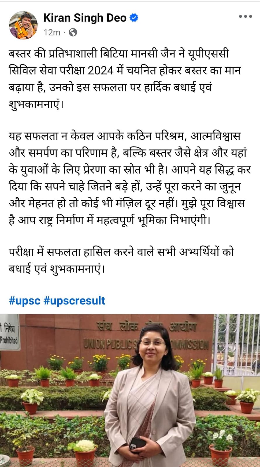 किरण देव ने दी मानसी को बधाई