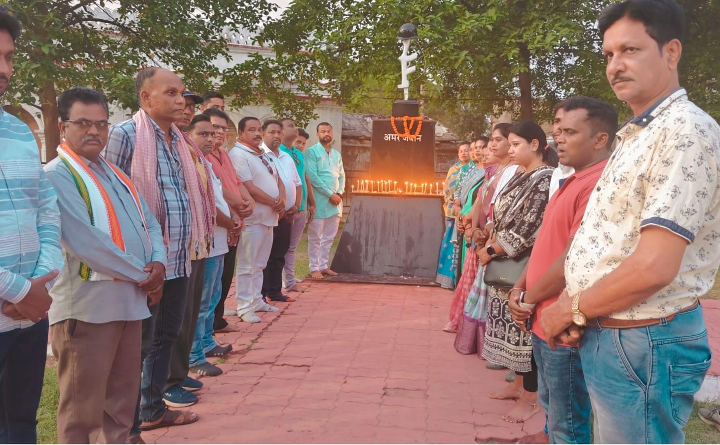 जगदलपुर। बस्तर जिला कांग्रेस कमेटी शहर अध्यक्ष सुशील मौर्य के नेतृत्व में जम्मू कश्मीर के पहलगांव के आतंकी हमले में शहीद पर्यटकों को जगदलपुर शहर के सिरहसार चौक स्थित शहीद स्मारक पर कैंडल जलाकर श्रद्धांजलि दी गई।