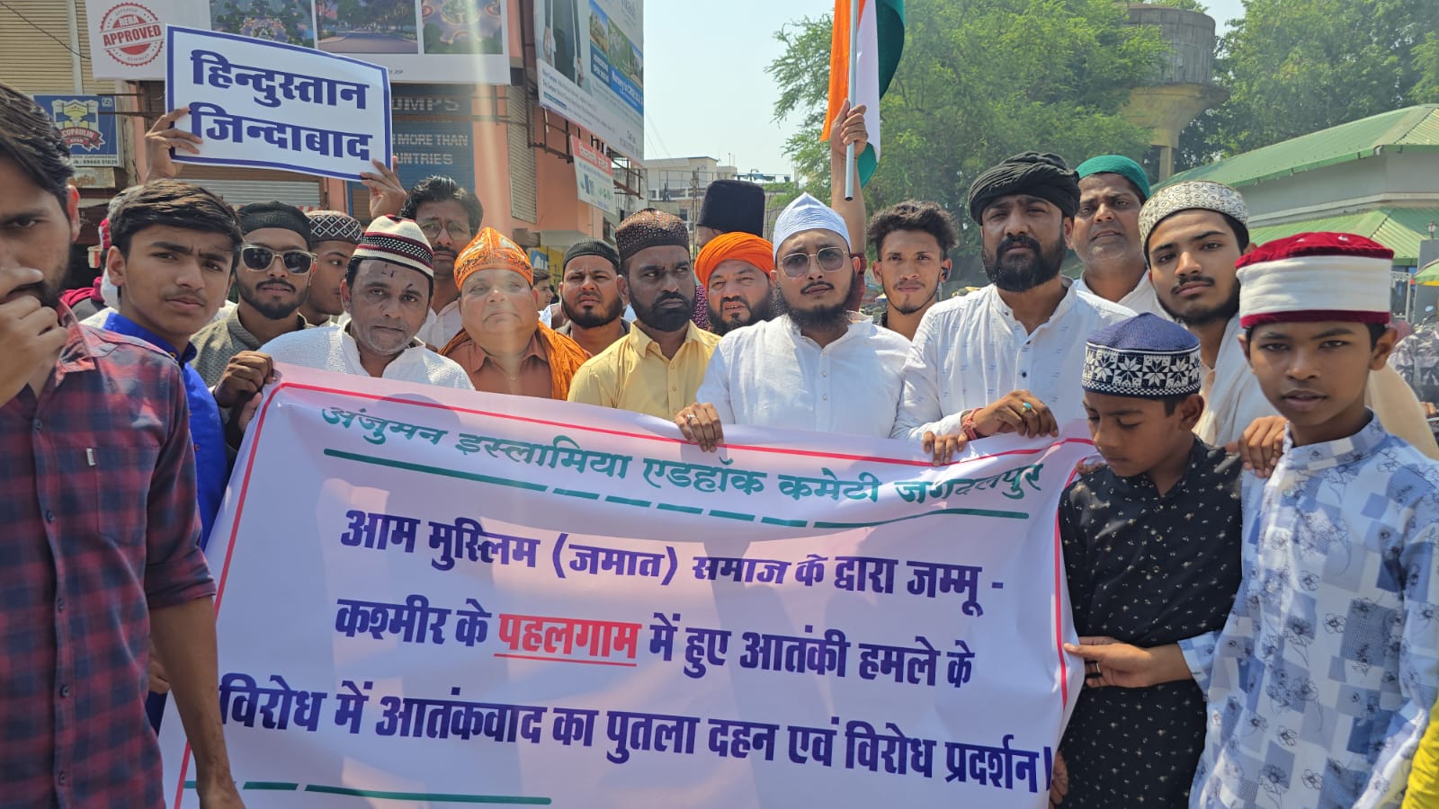 मुस्लिम समाज के लोग काफी देर तक मिताली चौक में आतंकवाद मुर्दाबाद और पाकिस्तान मुर्दाबाद के नारे लगाते हुए विरोध प्रदर्शन करते रहे। इस दौरान अंजुमन इस्लामिया एडहाक कमेटी के कार्यकारी अध्यक्ष डॉ. जहीरुद्दीन शेख ने कहा कि जो आतंकी घटना पहलगाम में घटी है वो पूरी इंसानियत को चोट पहुंचाने वाली घटना है। ये भारत की एकता और अखंडता पर प्रहार करने के उद्देश्य से की गई वारदात है। मुस्लिम समाज आतंकवाद का पुरजोर विरोध करता है और इसे संरक्षण देने वाले देश के खिलाफ भारत सरकार से मांग करता है कि देश को खंडित करने और देश में अशांति फैलाने के उद्देश्य से किए गए इस कायरतापूर्ण हमले के खिलाफ कठोर कदम उठाए। डॉ. जहीरुद्दीन शेख ने कहा कि इस्लाम में आतंकवाद की कोई जगह नहीं है। मानवता को शर्मशार करने वाले आतंकी कतई मुसलमान नहीं हो सकते।जगदलपुर मुस्लिम समाज के युवा जावेद खान ने पुतला दहन के दौरान कहा कि देश की पूरी मुस्लिम कौम आज इस आतंकी हमले के खिलाफ देश और सरकार के साथ कंधे से कंधा मिलाकर खड़ी है। हम जान दे देंगे पर हमारे मुल्क हिन्दुस्तान पर आंच नहीं आने देंगे। जावेद ने कहा अब वक्त आ गया है कि आतंकवाद और आतंकवादियों को संरक्षण देने वाले देश पाकिस्तान का जड़ से खात्मा किया जाए, जिसके लिए भारत सरकार के हर फैसले का समर्थन देश का प्रत्येक मुसलमान करेगा। आतंकवाद के खात्मे के लिए हर मुसलमान अंतिम लड़ाई लड़ने कमर कस चुका है और हम हर परिस्थिति में हमारे मुल्क हिन्दुस्तान के साथ खड़े थे, हैं और रहेंगे।पुतला दहन और विरोध प्रदर्शन के दौरान अंजुमन इस्लामिया एडहाक कमेटी के कार्यकारी अध्यक्ष डॉ जहीरुद्दीन शेख, इसराइल भारती, जावेद खान, मेहताब भाई, तौफीक पाशा, समीर खान, इसराइल हक, गुड्डा खान, शेख आदिल, जाहिद हुसैन, शादाब खान, मंसूर रजा, आसिफ खान, बादशाह खान और सभी मेंबर्स संहित बड़ी संख्या में मुस्लिम समाज के लोग उपस्थित रहे और सभी ने आतंकवाद और पाकिस्तान के खिलाफ जमकर नारेबाजी करते हुए विरोध प्रकट किया।