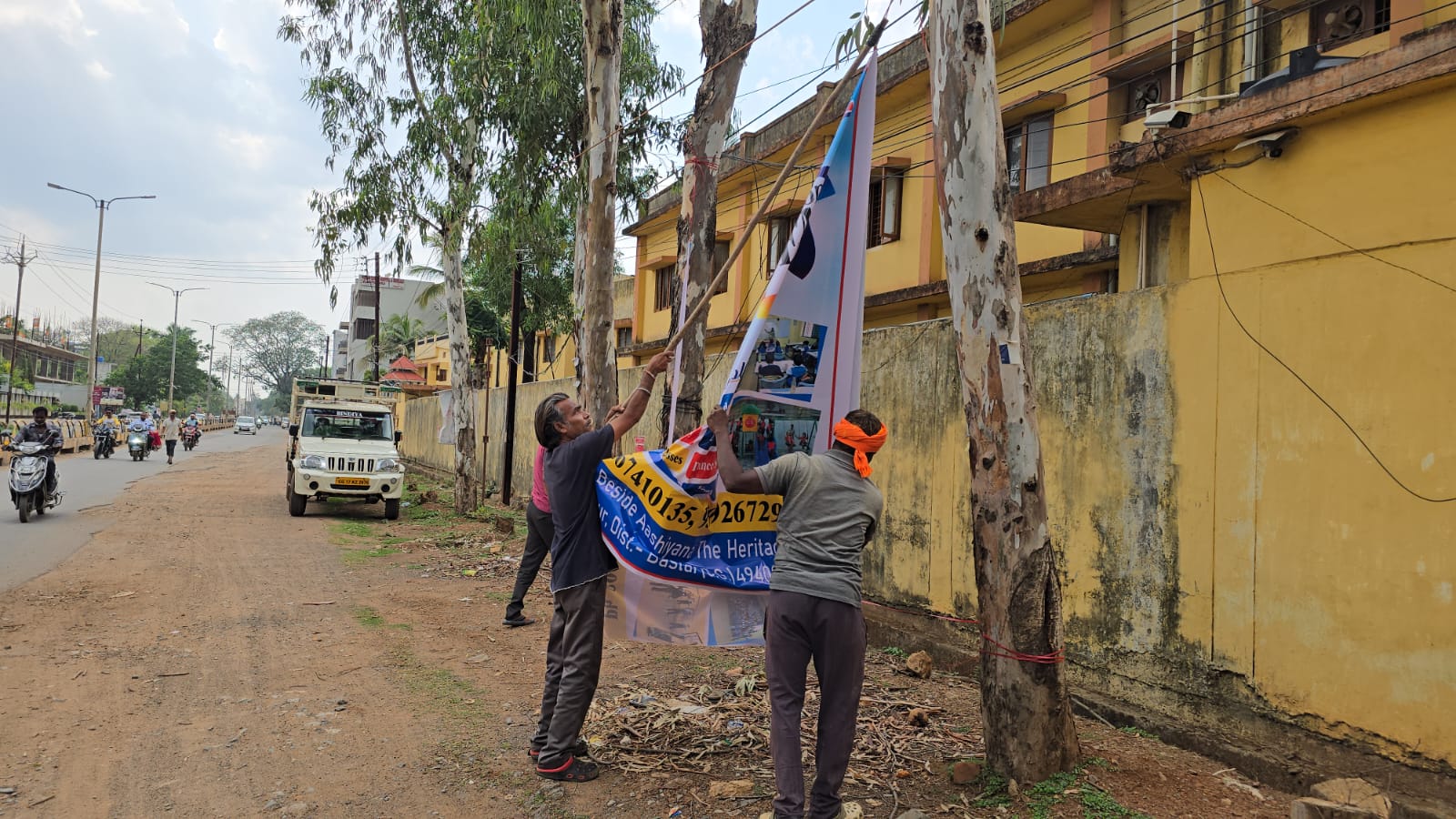 निकाले जा रहे प्रतिबंधित क्षेत्रों, डिवाइडर, पेड़, विद्युत पोल, ट्रांसफार्मर से फ्लेक्स