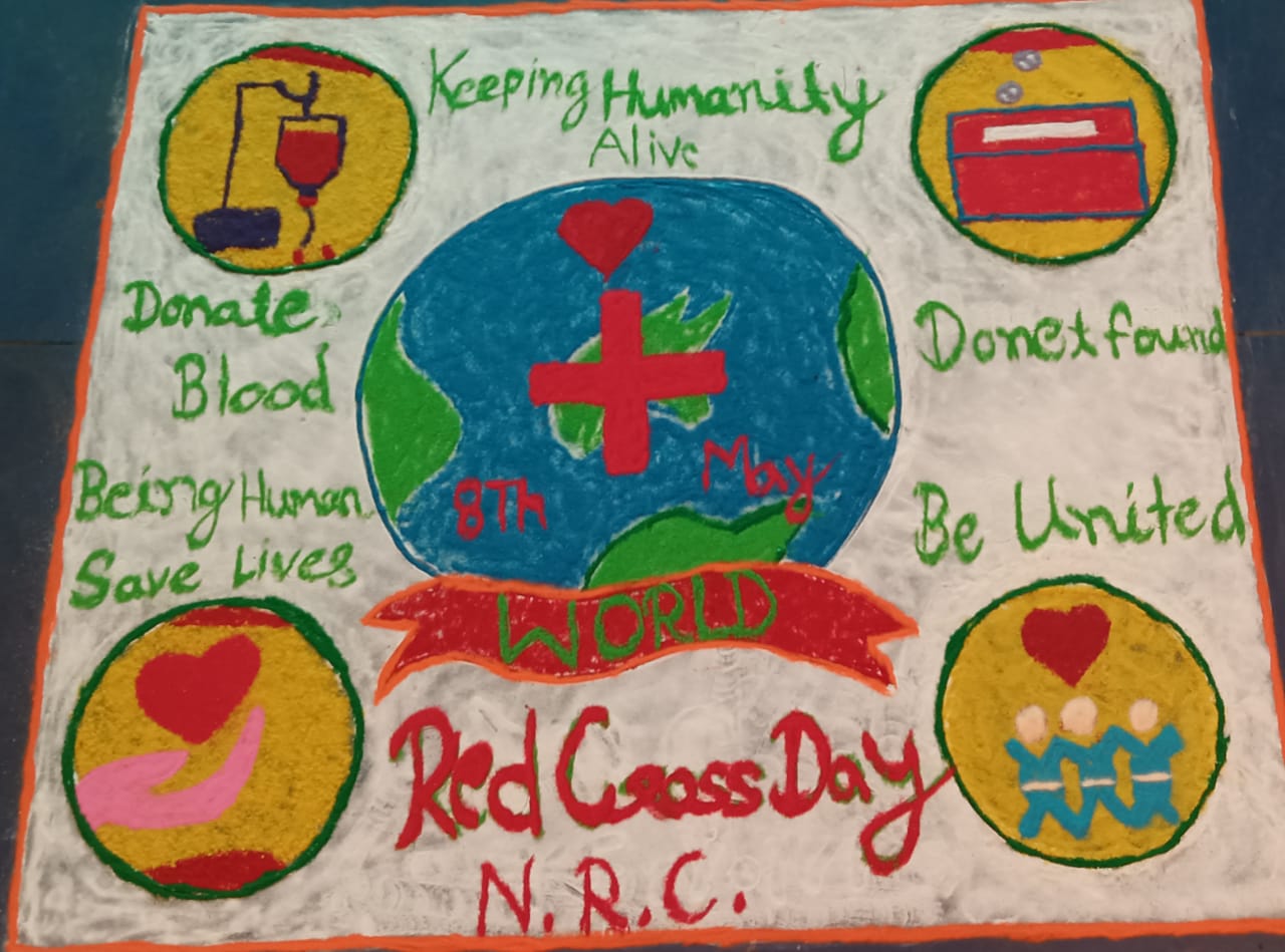 रेड क्रॉस दिवस पर रंगोली एवं पोस्टर प्रतियोगिता