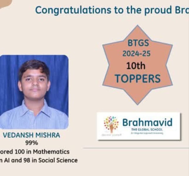 वेदांश मिश्रा ने दसवीं सीबीएससी में 99 प्रतिशत अंक पाकर राजधानी को पहुंचाया शीर्ष पर