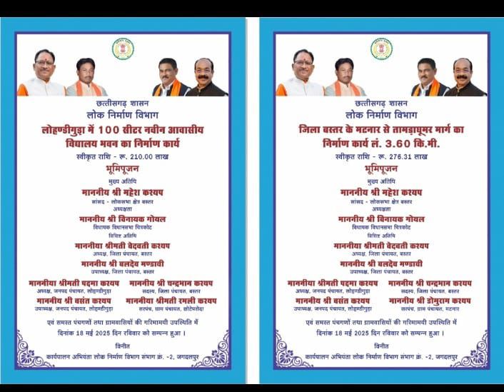 लोक निर्माण विभाग लोहंडीगुड़ा में निर्मित 100 सीटर विद्यालय भवन व बस्तर से तामड़ाघूमर मार्ग कार्य सहित अन्य निर्माण कार्यों के भूमिपूजन कार्यक्रम के लिए छपवाए जाने वाले आमंत्रण पत्रों में सिर्फ भाजपा नेताओं के ही नाम अंकित होते हैं। तामड़ाघूमर मार्ग के भूमिपूजन कार्यक्रम के लिए छपवाए आमंत्रण पत्र में लोहंडीगुड़ा के जिला पंचायत सदस्य योगेश बैज का नाम ही नहीं है। जबकि श्री बैज जहां सड़क निर्माण होना है उसी क्षेत्र का प्रतिनिधित्व करते हैं। इस आमंत्रण पत्र में दूसरे क्षेत्र से निर्वाचित जिला पंचायत सदस्य का नाम अंकित है। आमंत्रण पत्र में विनीत में कार्यपालन अभियंता लोक निर्माण विभाग अंकित है। इससे जाहिर होता है कि लोक निर्माण विभाग का भजपाईकरण हो गया है या फिर विभाग के अधिकारी आगे चलकर भाजपा में प्रवेश करने वाले हैं। विभाग के अधिकारियों द्वारा लगातार कांग्रेसी जनप्रतिनिधि की ऎसी ही उपेक्षा की जा रही है जिसे अनदेखा नहीं किया जा सकता। एक चुने हुए जनप्रतिनिधि का नाम न होना दुर्भाग्य का विषय है, आखिरकार जिस क्षेत्र में भूमिपूजन हो रहा है उसी क्षेत्र से जीते हुए जनप्रतिनिधि का नाम न होना विभाग की राजनीति प्रेरित हरकत का परिचायक है। लोक निर्माण विभाग के उच्च अधिकारियों को इसका जवाब देना चाहिए। जिला पंचायत सदस्य योगेश बैज ने बताया लगातार भूमिपूजन के कार्यक्रम में उनका नाम काट दिया जाता है। आखिर पीडब्ल्यूडी पर किसका दबाव है? आखिर पीडब्ल्यूडी विभाग इस तरह का कारनामा क्यों रहा है? क्यों एक चुने हुए जनप्रतिनिधि का अपमान किया जा रहा है। क्या पीडब्ल्यूडी पर किसी नेता का दबाव है? यह पीडब्ल्यूडी को स्पष्ट करना चाहिए। अगर ऐसा नहीं है तो भूमिपूजन कार्यक्रम के लिए छपवाए गए आमंत्रण पत्र में जिला पंचायत सदस्य का नाम क्यों नहीं लिखा गया इस बात का जवाब पीडब्ल्यूडी के अधिकारी को देना चाहिए।