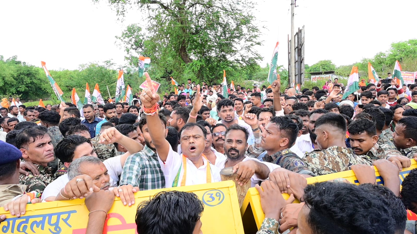 दरअसल लोहंडीगुड़ा एसडीएम नीतीश वर्मा पर आरोप है कि चित्रकोट आने वाले वीआईपी सैलानियों और बड़े अफसरों की खातिरदारी के लिए वे सरपंचों और पार्किंग शुल्क वसूलने वाली ग्राम समिति पर मुर्गा, बकरा और दारू का इंतजाम करने के लिए दबाव डालते हैं। मुर्गा, बकरा, दारू का इंतजाम करने से इंकार करने वाले सरपंचों, प्रमुख ग्रामीणों और ग्राम समिति से जुड़े युवाओं को प्रताड़ित करते हैं। ऐसा ही एक मामला कुछ दिन पहले जब चर्चा के केंद्र में आ गया जब सरपंच भंवर मौर्य ने मुर्गा, बकरा और दारू का इंतजाम करने से साफ मना कर दिया। फिर क्या था। एसडीएम साहब ने अपने पद की ताकत दिखा दी। आरोप है कि एसडीएम के कहने पर पुलिस ने सरपंच भंवर मौर्य और अन्य ग्रामीणों के खिलाफ संगीन धाराओं में मुकदमा दर्ज कर लिया। इस मामले ने तूल पकड़ लिया। एसडीएम के साथ सरपंच और ग्रामीणों की जमकर बहस हुई और कांग्रेस ने भी एसडीएम के खिलाफ मोर्चा खोल दिया। दो दिन पहले लोहंडीगुड़ा ब्लॉक कांग्रेस कमेटी और ग्रामीणों ने एसडीएम के खिलाफ हल्ला बोला था और आज खुद प्रदेश कांग्रेस अध्यक्ष दीपक बैज, वरिष्ठ कांग्रेस नेता एवं जगदलपुर के पूर्व विधायक रेखचंद जैन, प्रदेश कांग्रेस कमेटी के सचिव दुर्गेश राय जिला कांग्रेस अध्यक्ष द्वय सुशील मौर्य, प्रेमनाथ शुक्ला सरीखे बड़े नेता अपने सैकड़ों कार्यकर्ताओं के साथ सड़क पर उतर आए। कांग्रेस के लोग मुर्गा, बकरा, दारू की बोतलें लेकर इन्हें एसडीएम को भेंट करने निकल पड़े। दीपक बैज अपने एक हाथ में जिंदा देशी मुर्गा और दूसरे हाथ में प्रतीकात्मक दारू की बोतल लेकर चल रहे थे, जबकि एक कांग्रेस नेता जीवित सफेद बकरे की डोर थामे चलते नजर आए। वहीं कई कांग्रेसी मुर्गे लहराते चल रहे थे। प्रदर्शनकारी कांग्रेसी एसडीएम मुर्दाबाद, साय मुर्दाबाद के नारे लगा रहे थे।पुलिस ने कांग्रेस के लोगों और ग्रामीणों की भीड़ को रोकने के लिए एसडीएम ऑफिस से काफी पहले लोहे के बड़े बड़े पिंजरे लगा रखे थे, जिन्हें गिराते हुए कांग्रेसी आगे बढ़ गए।. पुलिस ने इन्हें रोकने के लिए पूरा जोर लगाया, मगर कामयाब नहीं हो पाई। कांग्रेस का कहना है कि सरपंच लोहंडीगुड़ा के पर लगे मामलों में कई दफाएं लगाई गई हैं एसडीएम वीआईपी के लिए मुर्गा मटन दारू सिगरेट की व्यवस्था करने आदिवासी सरपंच को बलि का बकरा बना रहे हैं। ऐसे एसडीएम को लोहंडीगुड़ा से तत्काल हटाया जाना चाहिए। एक आदिवासी सरपंच और निरीह आदिवासियों की रक्षा के लिए प्रदेश कांग्रेस के आदिवासी अध्यक्ष दीपक बैज का ऐसा रौद्र रूप पहली बार देखने को मिला।