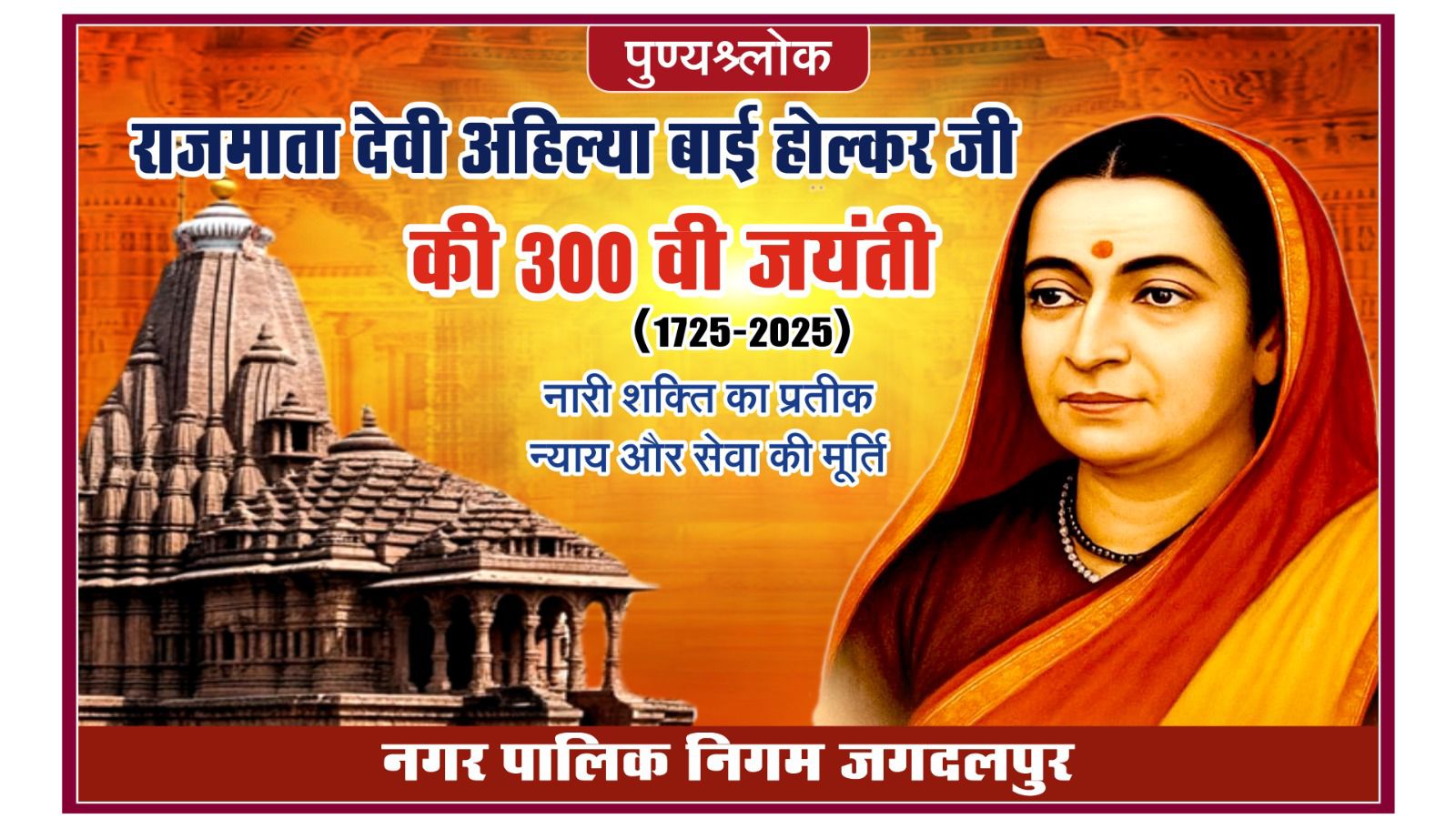 जगदलपुर। पुण्यश्लोक देवी अहिल्या बाई होल्कर की 300वीं जयंती पर नगर निगम जगदलपुर द्वारा 23 मई शुक्रवार को प्रातः 7 बजे से भूतहा तालाब जगदलपुर में सफाई अभियान का आयोजन किया जा रहा है। महापौर संजय पाण्डेय ने इस पुण्य कार्य में नगर के पर सभी गणमान्य नागरिकों, स्वच्छता एंबेसडर्स, सामाजिक संगठनों और जनप्रतिनिधियों से सहभागिता की अपील की है। मेयर संजयपाण्डेय ने कहा है कि आइए हम सब मिलकर स्वच्छता के इस संकल्प को साकार करें एवं देवी अहिल्या बाई होलकर को समर्पित इस अभियान को सफल बनाएं।