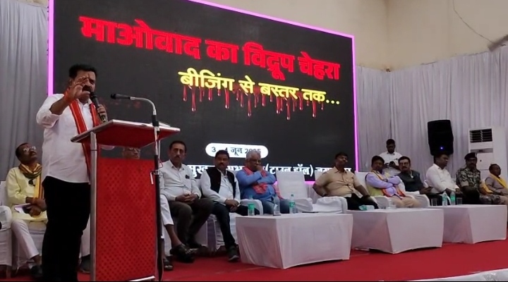 गृहमंत्री विजय शर्मा जगदलपुर के डॉ. श्यामा प्रसाद मुखर्जी टाउन हॉल में बस्तर शांति समिति द्वारा नक्सलवाद पर आयोजित संवाद कार्यक्रम में बोल रहे रहे थे। संवाद का विषय था- “माओवाद का विद्रुप चेहरा: बिजिंग से बस्तर तक”। आरंभ में महापौर संजय पाण्डेय ने स्वागत भाषण दिया और विषय की रुपरेखा रखी। डिप्टी सीएम विजय शर्मा ने कहा कि बस्तर समेत पूरे छत्तीसगढ़ से नक्सलवाद का तेजी से सफाया हो रहा है। बस्तर जिला तो नक्सल मुक्त घोषित हो ही चुका है, बाकी के छह जिले भी जल्द नक्सलवाद के नासूर से मुक्त हो जाएंगे। उन्होंने कहा कि केंद्रीय सुरक्षा बलों के साथ ही छत्तीसगढ़ पुलिस, डीआरजी और बस्तर फाइटर्स के जवान भी नक्सलवाद के सफाये में प्रण प्राण से लगे हुए हैं। स्थानीय पुलिस, डीआरजी और बस्तर फाइटर्स के जवान बस्तररिहा युवा हैं। इनके शरीर पर गजब का करंट प्रवाहित हो रहा है, उनसे हाथ मिलाने पर पूरे शरीर में ऊर्जा का संचार हो जाता है। श्री शर्मा ने कहा कि यही बस्तरिहा जवान नक्सलियों को पाताल से भी ढूंढ निकालेंगे और बस्तर को शांति का टापू बनाकर ही दम लेंगे। गृहमंत्री विजय शर्मा ने कहा कि बस्तर का आम आदमी नक्सलवाद की खोखली विचारधारा और दोहरे चरित्र को अब अच्छी तरह समझ चुका है और नक्सलियों के बहकावे में न आकर विकास की मुख्यधारा से जुड़ने आतुर है। श्री शर्मा ने एंटी नक्सल ऑपरेशन पर बस्तर में तैनात जवानों के हौसले और सेवा भाव का जिक्र करते हुए कहा कि हमारे जवान आम बस्तरिहा के प्रति अपने दिल में सॉफ्ट कार्नर रखकर काम कर रहे हैं और उतने ही हार्ड वे नक्सलियों के प्रति हैं। एक समय पूरे बस्तर को डराए रखने वाले नक्सली आज खुद डर के साये में जी रहे हैं। बड़े पैमाने पर हो रहा आत्मसमर्पण इसका उदाहरण है।