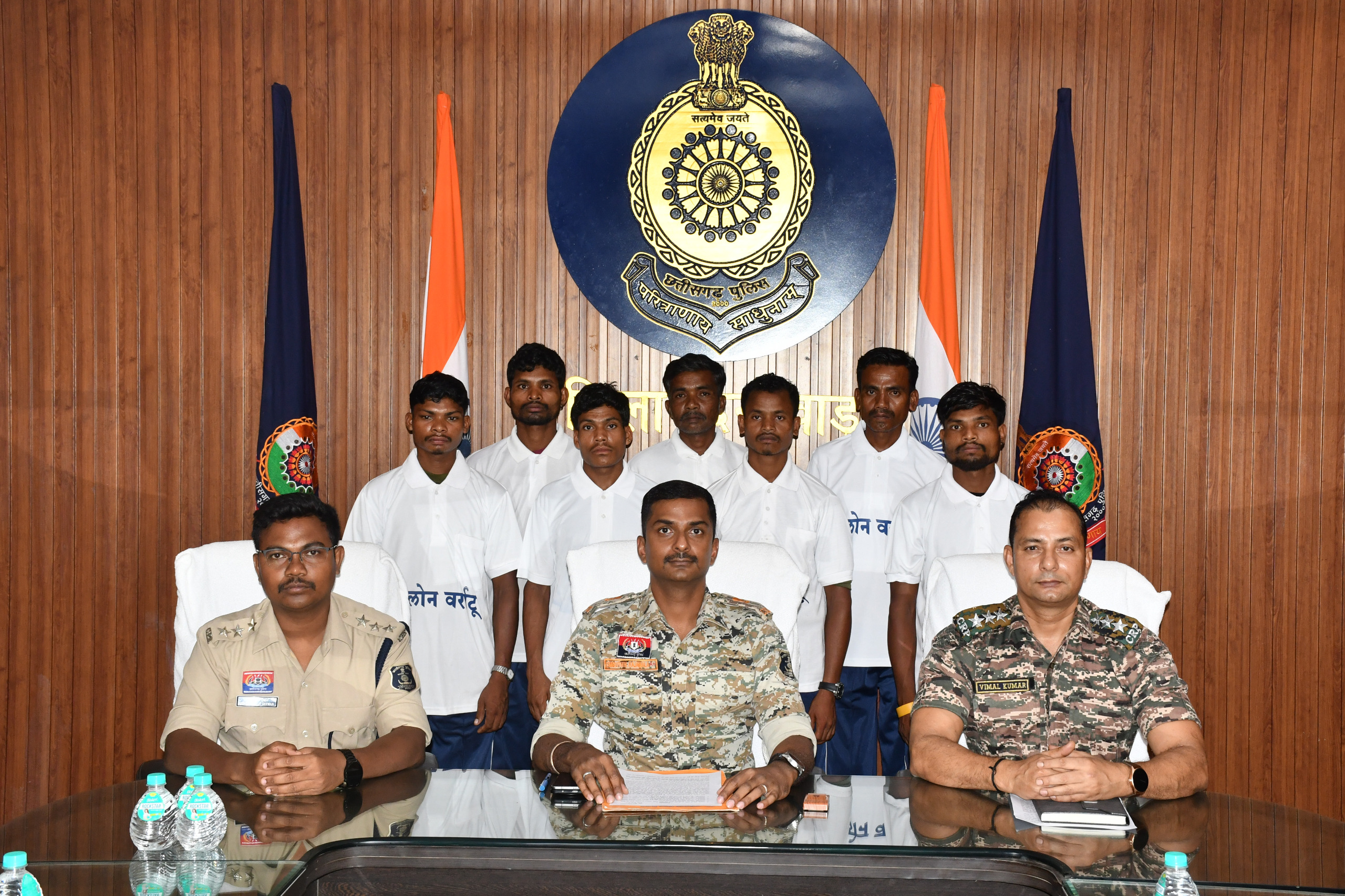 पुलिस उप महानिरीक्षक कमलोचन कश्यप, पुलिस अधीक्षक दंतेवाड़ा गौरव राय, कमांडेंट 230वीं वाहिनी सीआरपीएफ अनिल कुमार प्रसाद, कमांडेंट 195वीं वाहिनी सीआरपीएफ राजीव कुमार, अतिरिक्त पुलिस अधीक्षक स्मृतिक राजनाला, अतिरिक्त पुलिस अधीक्षक पूजा कुमार व रामकुमार बर्मन के समक्ष डीआरजी कार्यालय दंतेवाड़ा में इन नक्सलियों ने आत्मसमर्पण किया। सरेंडर करने वाले नक्सलियों में जुगलू उर्फ सुंडुम कोवासी पिता स्व. सुक्को निवासी कुड़मेर थाना मिरतुर, दशा उर्फ बुरकू पोड़ियाम पिता हुंगा निवासी कुड़मेर थाना मिरतुर जिला बीजापुर, भोजाराम माड़वी पिता पाण्डू राम माड़वी निवासी सालेपाल भटवेड़ा थाना मालेवाही, लखमा उर्फ सुती उर्फ लखन मरकाम पिता हुंगा मरकाम निवासी टेटम थाना कटेकल्याण, रातू उर्फ ओठे कोवासी पिता पांडू निवासी कुड़मेर थाना मिरतुर, सुखराम पोड़ियाम पिता हडमो निवासी करकावाड़ा थाना बांगापाल, पंडरू राम पोड़ियाम पिता हिड़मा निवासी पुसालामा थाना ओरछा जिला नारायणपुर शामिल हैं।