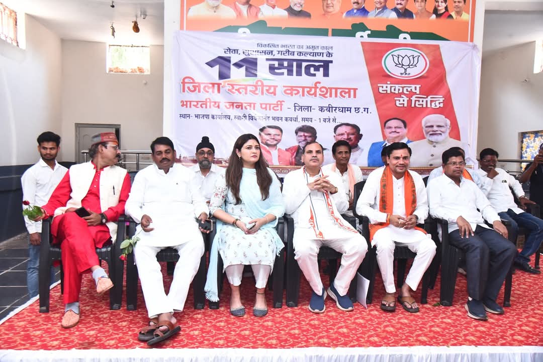 कवर्धा,,, प्रधानमंत्री नरेंद्र मोदी के नेतृत्व वाली केंद्र सरकार के विकसित भारत के अमृतकाल और सेवा-सुशासन-गरीब कल्याण के गौरवपूर्ण 11 साल पूरे होने पर भारतीय जनता पार्टी द्वारा चलाई जाने वाले ‘संकल्प से सिद्धि‘ अभियान के लिए आज यहा जिला स्तर पर कार्यशाला आयोजित की गई। 9 जून से 25 जून तक चलने वाला यह अभियान विकसित भारत का अमृतकाल एवं सेवा-सुशासन-गरीब कल्याण के 11 साल पर आधारित कार्यशाला है।