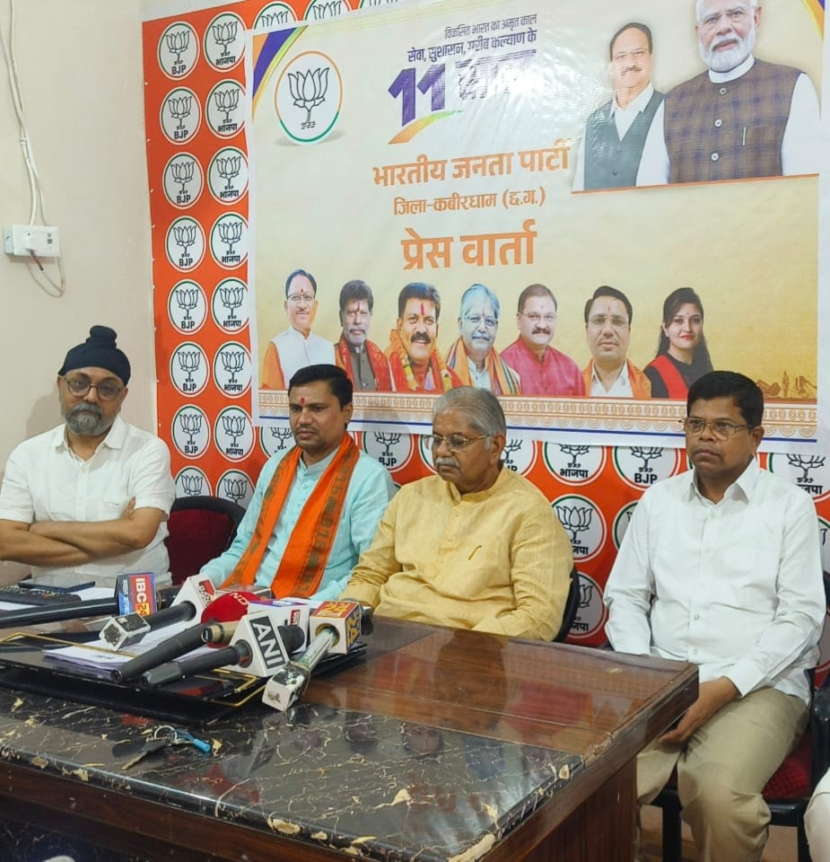कवर्धा,,,विकसित भारत के अमृत काल में केन्द्र सरकार के प्रधानमंत्री नरेन्द्र मोदी के लगातार 11 वर्ष पूर्ण होने पर भारतीय जनता पार्टी जिला कवर्धा द्वारा पत्रकार वार्ता आयोजित की गई. जिसमें मुख्य वक्ता के रूप में श्री धरम लाल कौशिक विधायक बिल्हा एवं पूर्व विधानसभा अध्यक्ष, जिला भाजपा अध्यक्ष राजेंद्र चंद्रवंशी, पूर्व विधायक अशोक साहू, वरिष्ठ रामकुमार भट्ट, अनिल ठाकुर उपस्थित रहे.