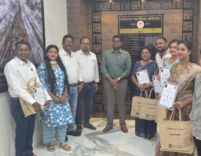 जगदलपुर। कलेक्टर हरिस एस के निर्देशन एवं मुख्य कार्यपालन अधिकारी जिला पंचायत प्रतीक जैन के मार्गदर्शन शिक्षा विभाग व समग्र शिक्षा द्वारा शिक्षा के क्षेत्र में आचार्य विनोबा भावे शिक्षक सहायक कार्यक्रम संचालित किया जा रहा है। जिसके तहत विनोबा एप में उत्कृष्ट कार्य करने वाले पांच शिक्षकों को मंगलवार को कलेक्टर हरिस ने अपने कक्ष में पुरस्कार और प्रमाण पत्र प्रदान किए।