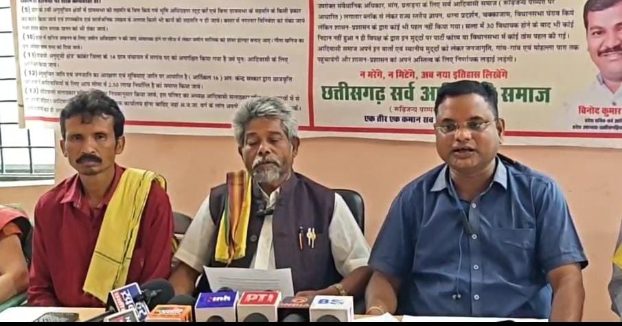 सर्व आदिवासी समाज ने स्पष्ट किया कि वे इन मुद्दों पर शासन-प्रशासन से साफ-साफ बात करना चाहते हैं और इन विषयों पर गहन चिंतन-मनन कर रहे हैं। इस दौरान सर्व आदिवासी समाज के जिला अध्यक्ष जग्गूराम तेलामी, कमलेश पैंकरा, सीताराम मांझी, पांडूराम तेलाम, विनीता बघेल, श्रवण सैंड्रा, मंगू लेकाम, सतीश मंडावी सहित अन्य समाज प्रमुख मौजूद थे।