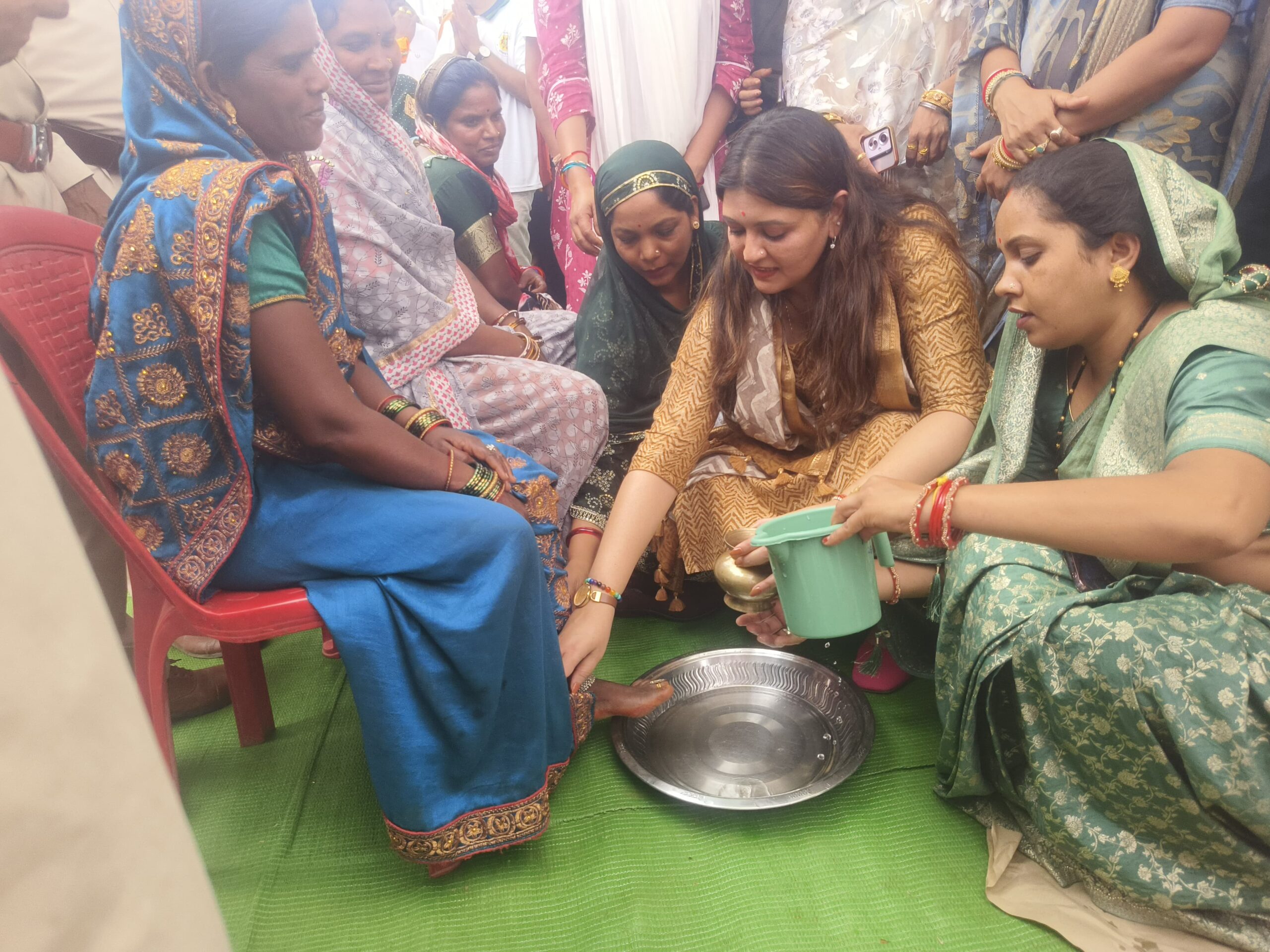 पंडरिया विधायक भावना बोहरा ने तेंदूपत्ता संग्राहक महिलाओं के पैर पखार कर अपने हाथों से पहनाई चरण पादुका