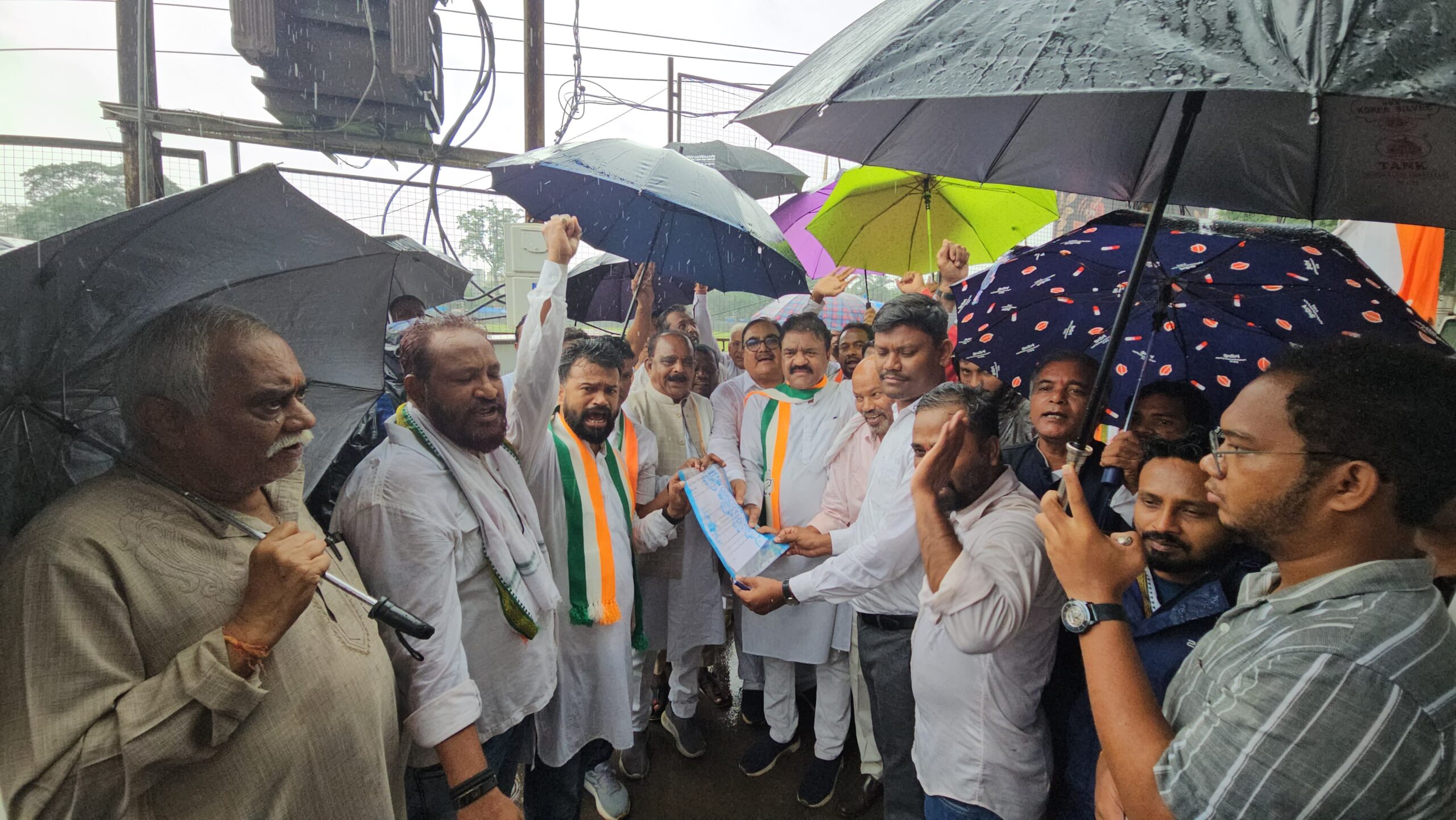 जगदलपुर। जिला मुख्यालय जगदलपुर में कांग्रेस नेताओं ने बरसते पानी के बीच शिक्षा न्याय यात्रा निकाली और जिला शिक्षा कार्यालय का घेराव किया।