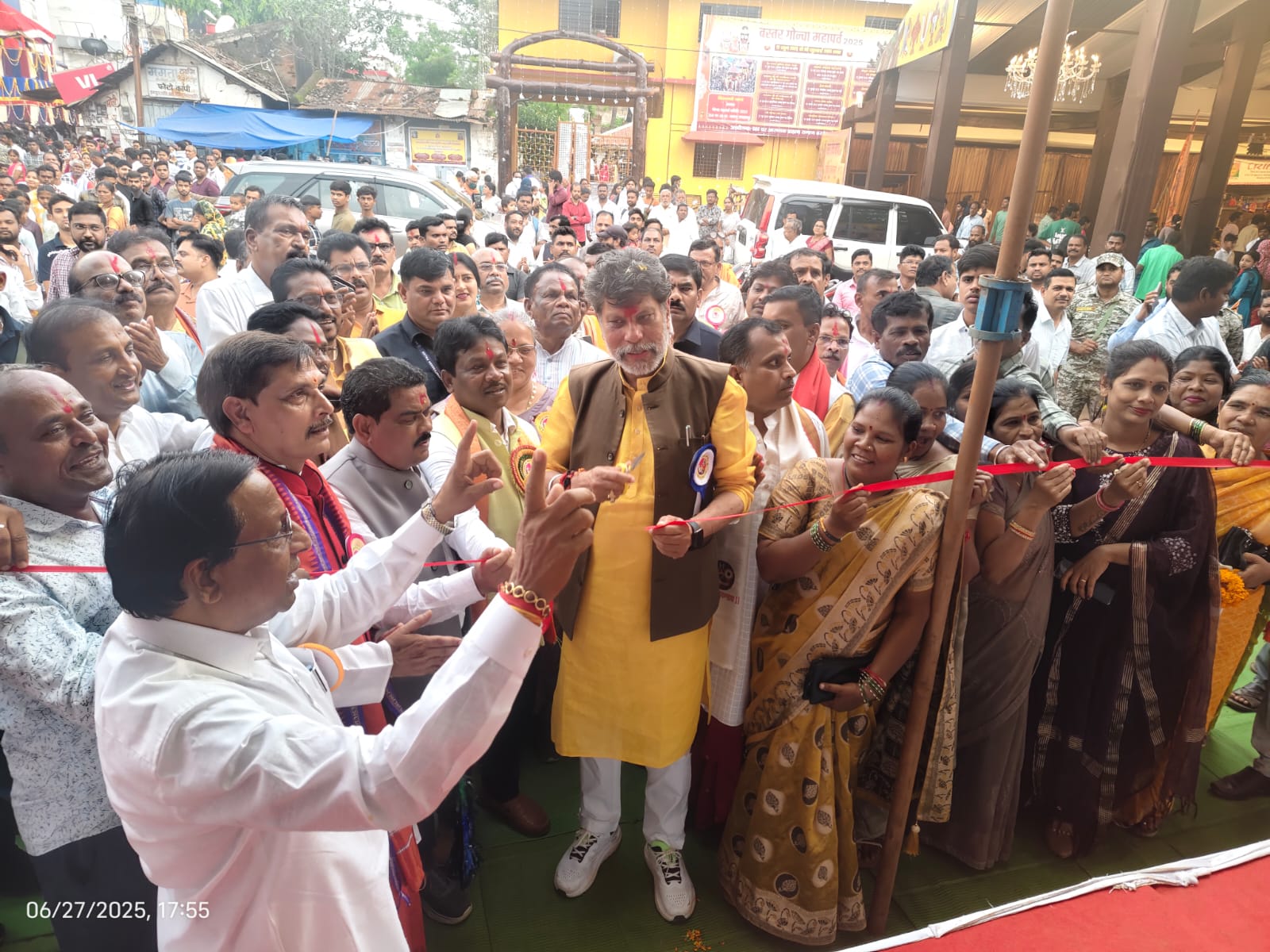 जगदलपुर :- बस्तर गोंचा महापर्व पर आज नगर पालिक निगम द्वारा तैयार नगर गौंचा गुड़ी का भाजपा प्रदेश अध्यक्ष एवं विधायक श्री किरण देव, सांसद श्री महेश कश्यप ने फीता काटकर शुभारंभ किया। इस दौरान चित्रकूट विधायक श्री विनायक गोयल , अध्यक्ष खेमसिंह देवांगन एवं जनप्रतिनिधि और 360 आरण्यक ब्राह्मण समाज के पदाधिकारीगण एवं अधिकारी व कर्मचारी उपस्थित थे।