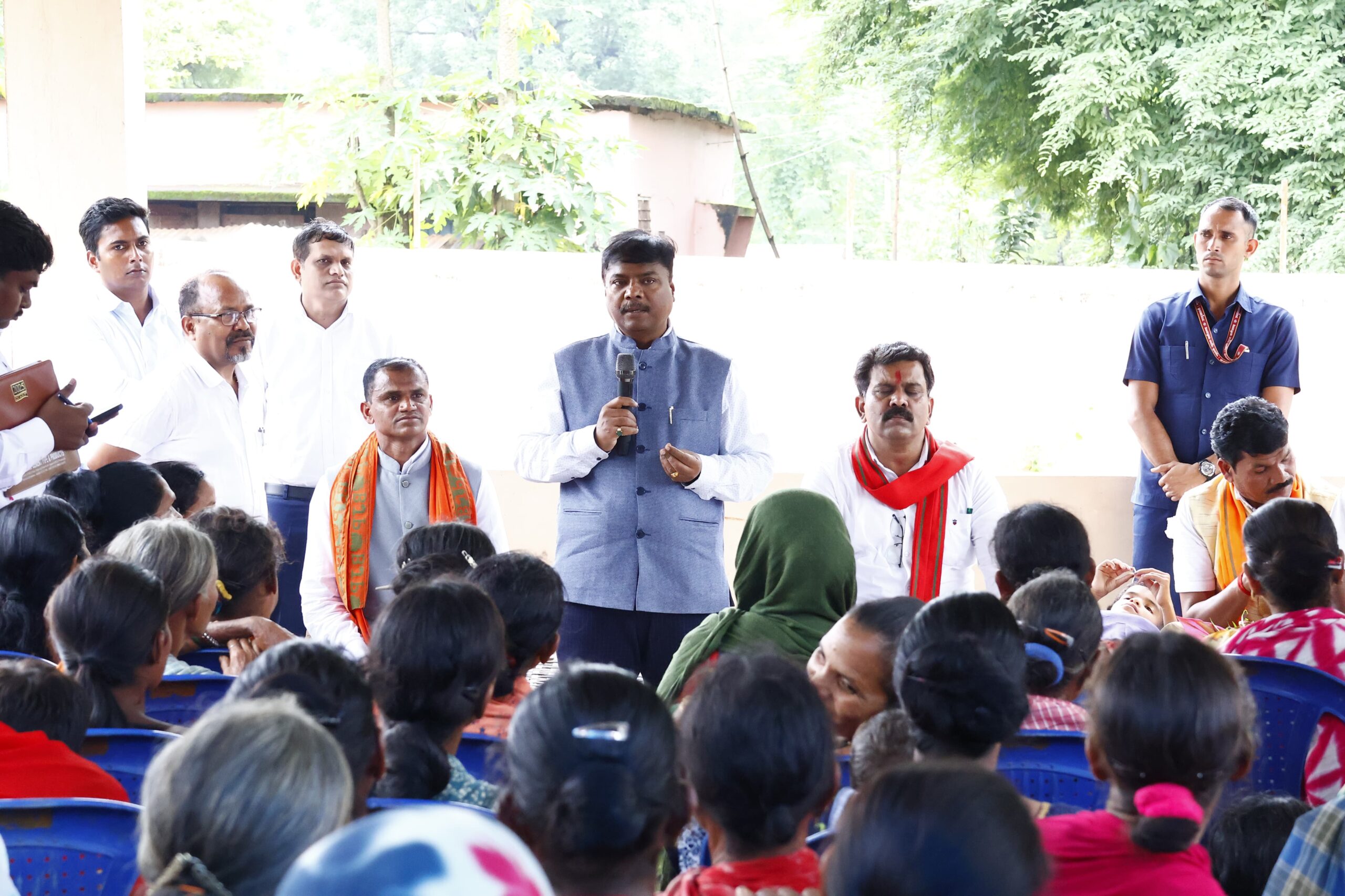 नारायणपुर,:- प्रदेश के उप मुख्यमंत्री एवं गृह, जेल, पंचायत, ग्रामीण विकास, तकनीकी शिक्षा एवं रोजगार, विज्ञान एवं प्रौद्योगिकी श्री विजय शर्मा एवं संसदीय कार्य, वन एवं जलवायु परिवर्तन, जल संसाधन, कौशल विकास एवं सहकारिता मंत्री श्री केदार कश्यप ने ईरकभट्टी के जनचौपाल में शामिल होकर ग्रामीणों से राज्य सरकार द्वारा संचालित विभिन्न जनकल्याणकारी योजनाओं की जानकारी ली। उप मुख्यमंत्री श्री शर्मा ने बस्तर संभाग के विधायक, जिला पंचायत अध्यक्ष, जनपद पंचायत, ग्राम पंचायत सरपंच सहित विभिन्न जनप्रतिनिधियों में प्रमुखता से आदिवासियों की बहुलता बताई। उन्होंने नियद नेल्लानार योजना अंतर्गत संचालित विभिन्न जनकल्याणकारी योजना जैसे सड़क, पुल पुलिया, स्कूल भवन, आंगनबाड़ी, मोबाईल टावर, बिजली, पेयजल, राशन कार्ड, आधार कार्ड, प्रधानमंत्री आवास निर्माण आदि की जानकारी ली।