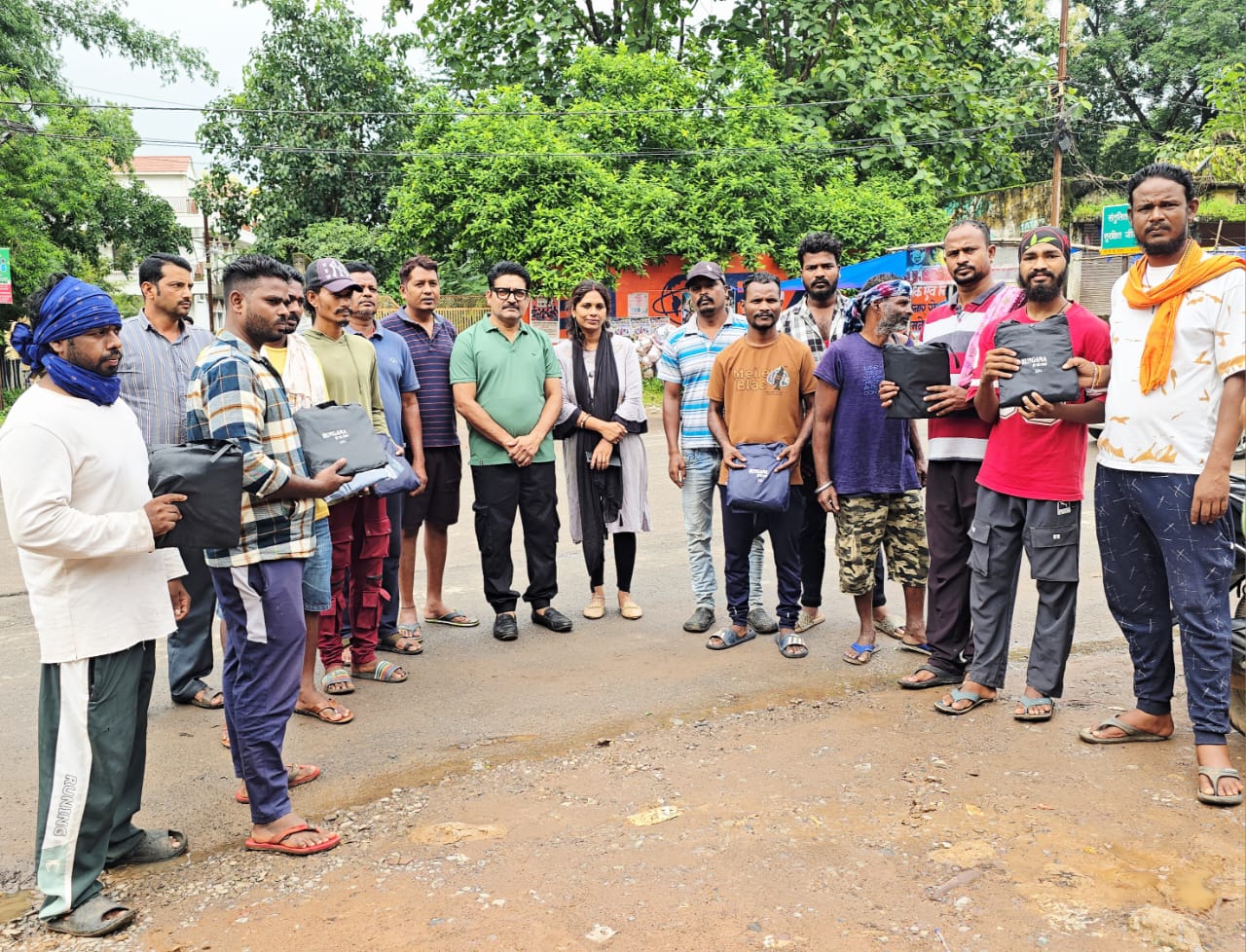 शुक्रवार को महापौर संजय पांडे के दिशा निर्देश पर गुरु गोविंद सिंह वार्ड, लोकमान्य तिलक वार्ड, कुशा भाऊ ठाकरे वार्ड एवं अटल बिहारी वाजपेई वार्ड के सफाई कर्मचारियों को पार्षद संग्राम सिंह राणा एवं पूनम रितेश सिन्हा की उपस्थिति में बरसात से बचने हेतु रेनकोट प्रदाय किया गया।
