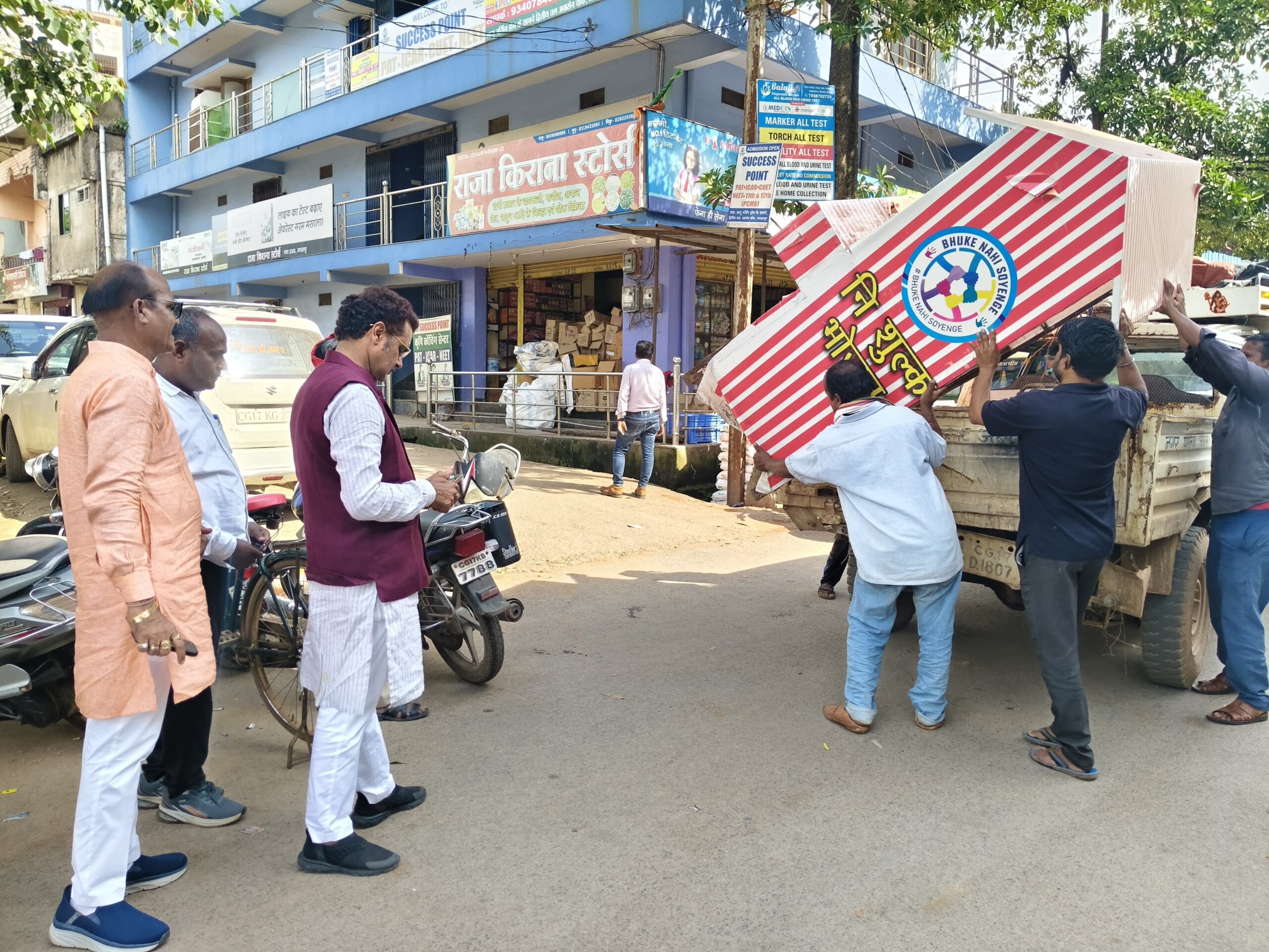जगदलपुर। महापौर संजय पाण्डेय ने फिर एकबार इंसानियत की मिसाल पेश की है। शहर के राउतपारा इलाके में आईकेएफ फाउंडेशन द्वारा संचालित “भूखे को सोने नहीं देंगे” अभियान के तहत लगाए गए ठेले को दो दिन पहले नगर निगम द्वारा हटा दिया गया था। सोमवार को महापौर संजय पाण्डे की पहल पर निगम की टीम ने दोबारा ठेले को व्यवस्थित किया। महापौर के साथ निगम अध्यक्ष खेमसिंह देवांगन, एमआईसी सदस्य निर्मल पानीमाही, लक्ष्मण झा मौजूद रहे।