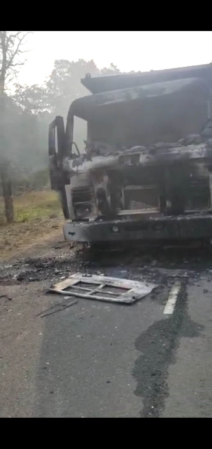 बड़ी खबर – माओवादियों ने किया दो टिप्परों को आग के हवाले