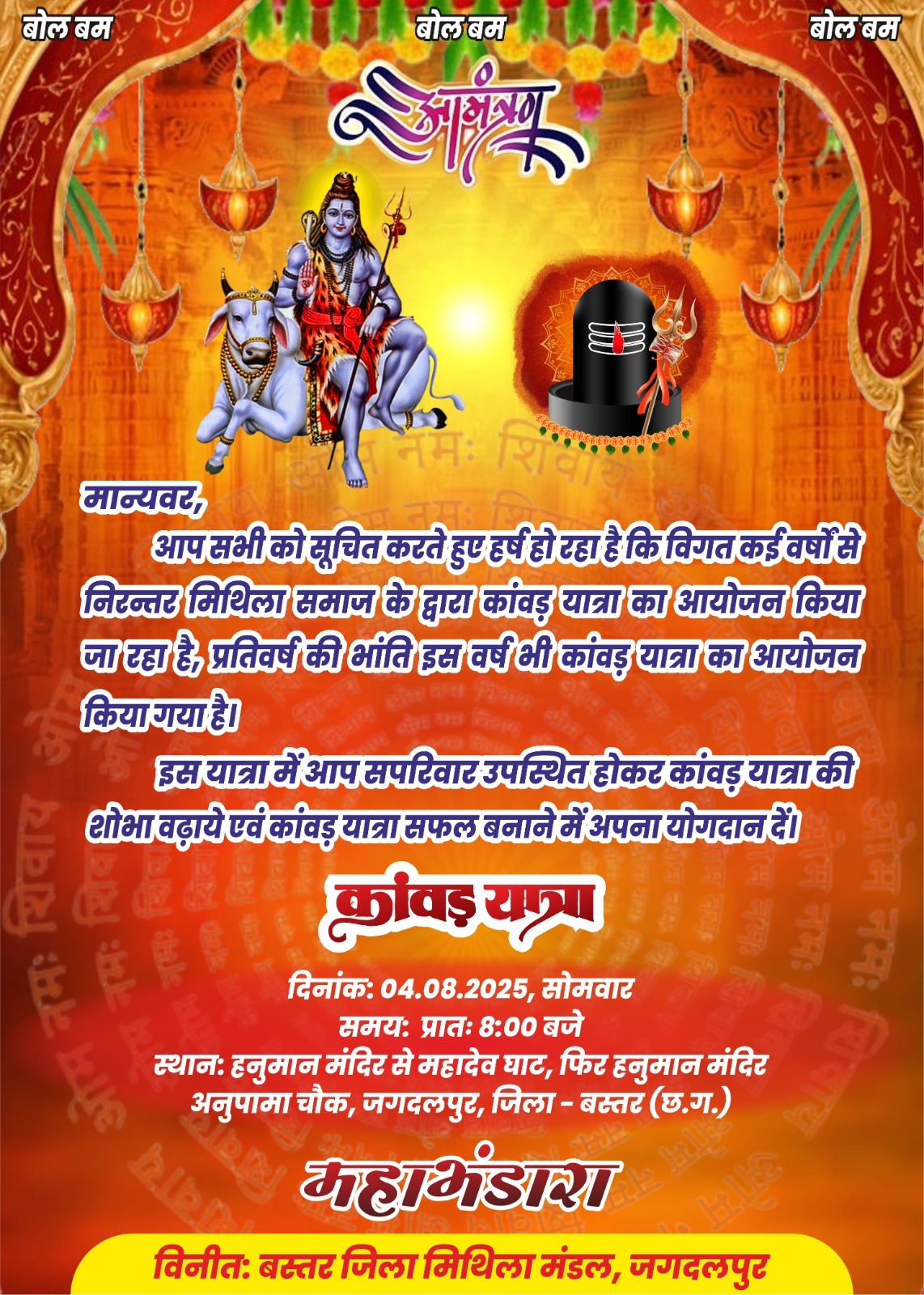 मिथिला युवा मंच ने निकाली भव्य कांवड़ यात्रा