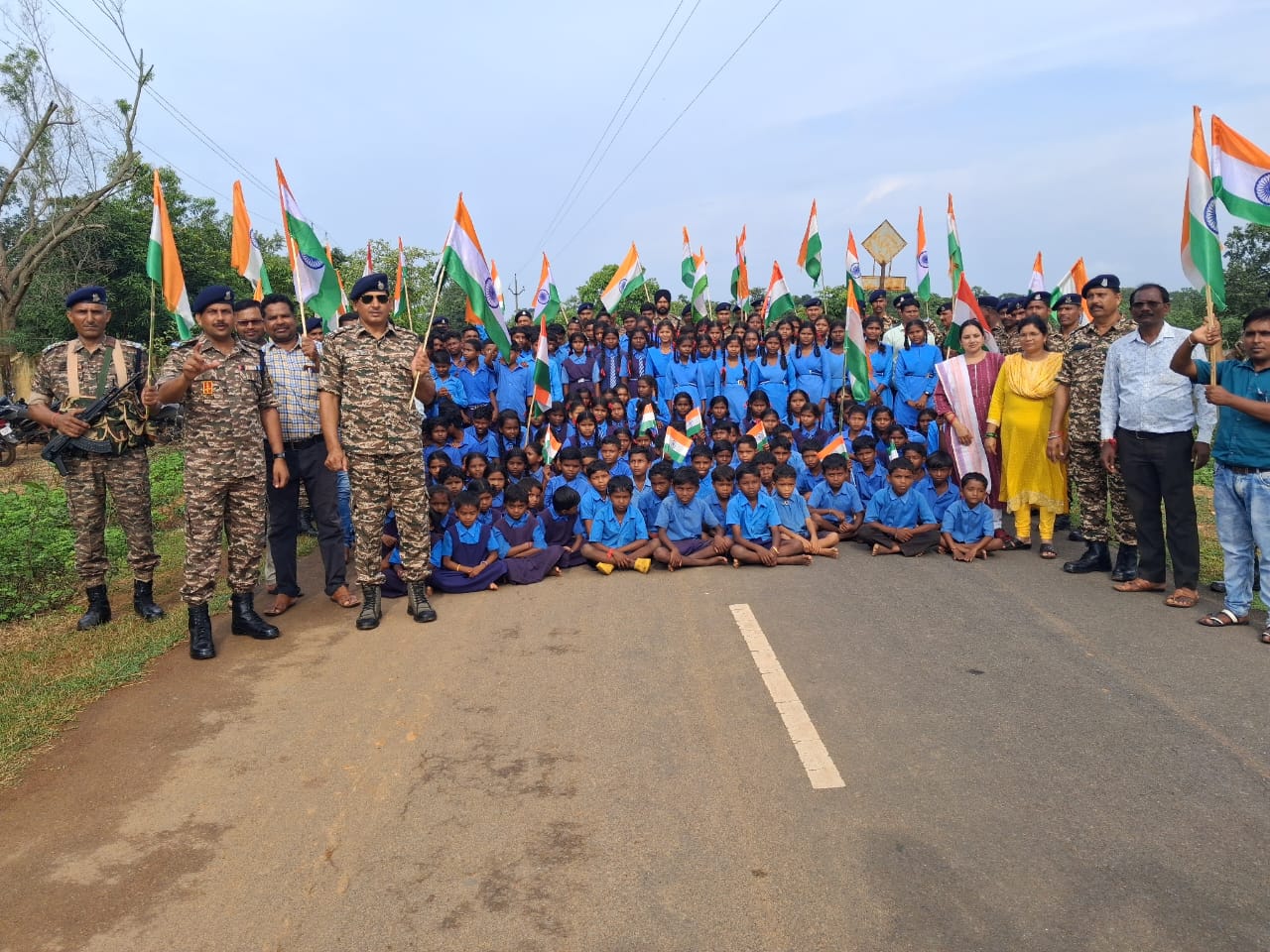 सीआरपीएफ ने किया गांवों में तिरंगा वितरण