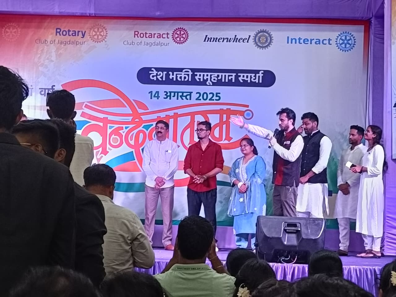 जगदलपुर :- रोटरी क्लब जगदलपुर के द्वारा लगातार 40 वे वर्ष स्थानीय रोटरी भवन में स्वतंत्रता दिवस की पूर्व संध्या पर अंतरशालेय और अंतर महाविद्यालयीन देशभक्ति सामूहिक गीत प्रतियोगिता का आयोजन किया गया जिसमें मुख्य अतिथि के रूप में पुलिस अधीक्षक बस्तर शलभ सिन्हा उपस्थित थे जिन्होंने युवाओं को ड्रग्स से दूर रहने के लिए
