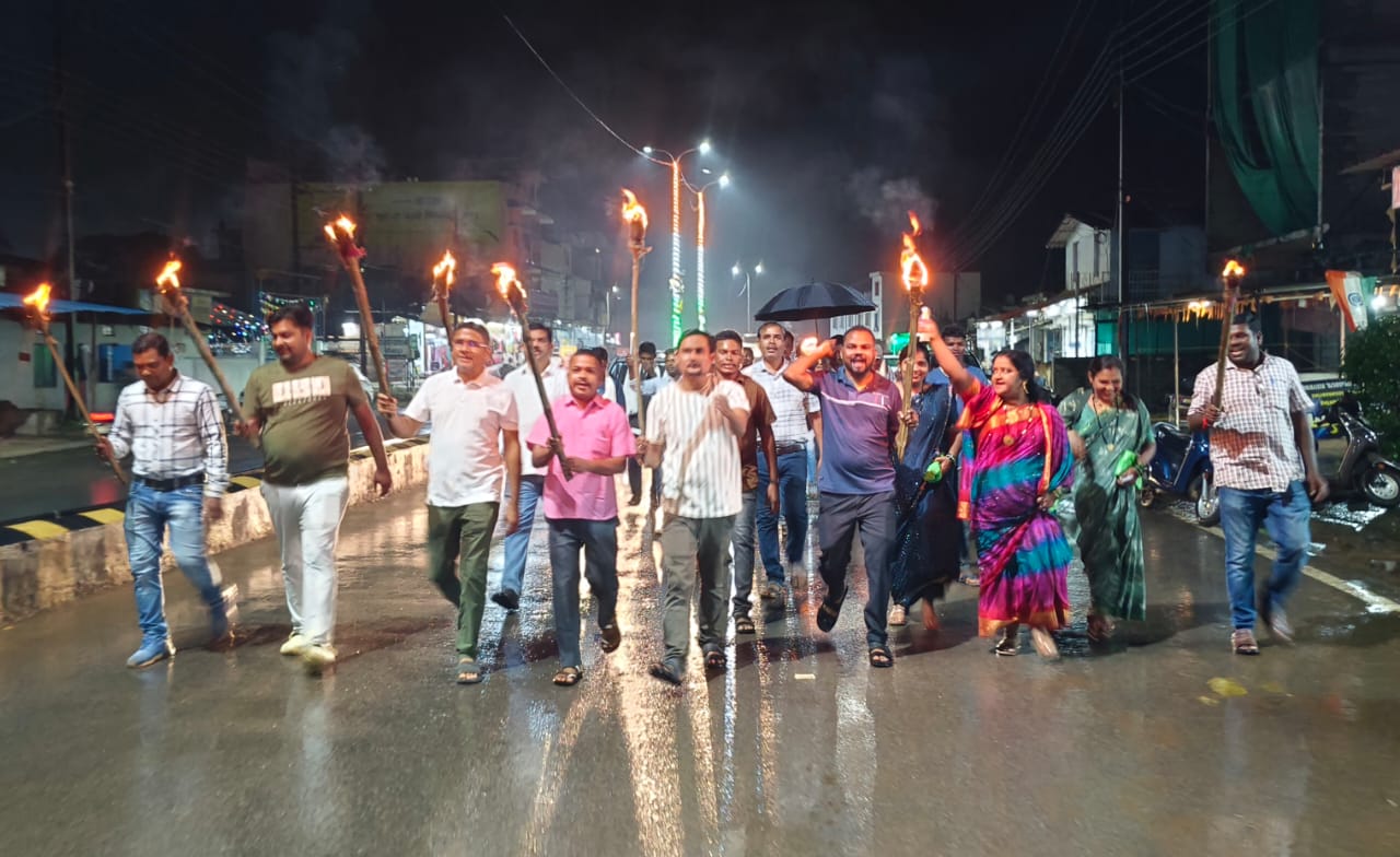 जनादेश के अपमान के खिलाफ बीजापुर में कांग्रेस ने निकाला मशाल जुलूस