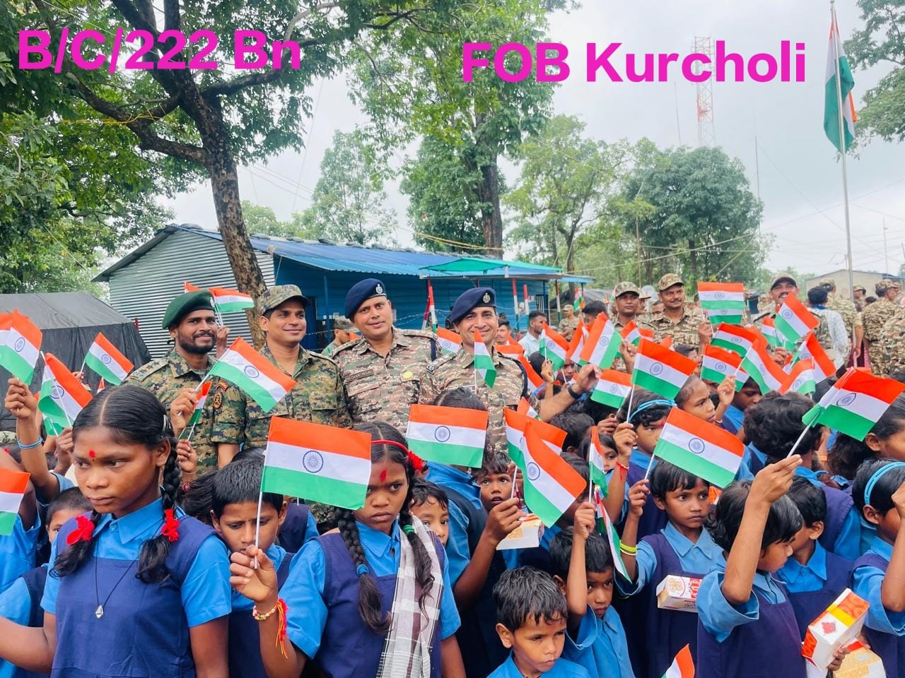 जगदलपुर। बस्तर संभाग के बीजापुर जिले के अंदरूनी एवं नक्सल प्रभावित क्षेत्रों में स्थापित नए सुरक्षा बल कैंपों एवं थानों में 79वें स्वतंत्रता दिवस के अवसर पर ध्वजारोहण कार्यक्रम का आयोजन हुआ। इस अवसर पर ग्रामीणों, स्कूली बच्चों, जनप्रतिनिधियों एवं सुरक्षा बल के अधिकारियों- कर्मचारियों ने मिलकर तिरंगा फहराया।