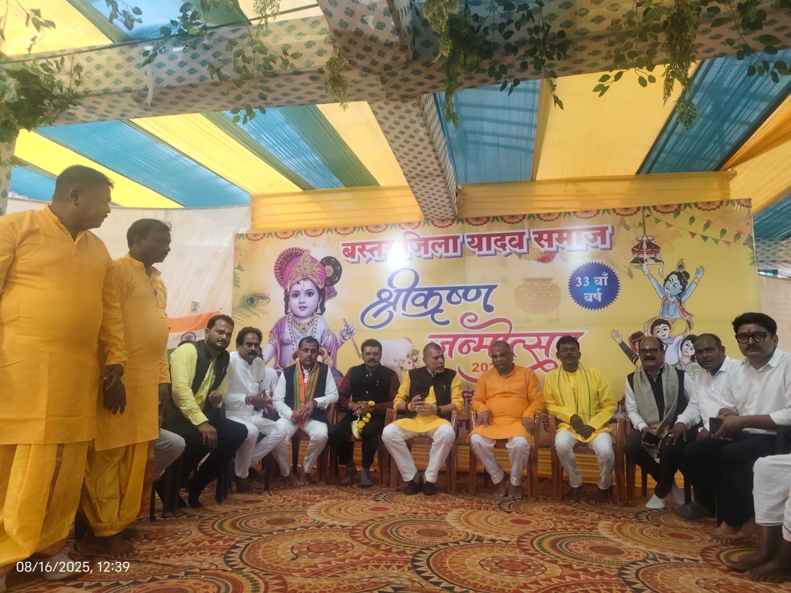 मंदिर परिसर में बस्तर जिला यादव समाज द्वारा भाजपा प्रदेश अध्यक्ष एवं विधायक किरण देव का सामाजिक स्तर पर स्वागत किया किया गया, साथ ही स्मृति चिन्ह भेंट किया गया। वहीं आज कृष्ण मंदिर परिसर में विधायक निधि से पांच लाख की लागत से शेड निर्माण कार्य का विधिवत भूमिपूजन भाजपा प्रदेश अध्यक्ष एवं विधायक किरण देव, बेवरेज कॉरपोरेशन अध्यक्ष श्रीनिवास मद्दी, महापौर संजय पांडे एवं जनप्रतिनिधियों एवं समाज के पदाधिकारियों की उपस्थिति में किया गया। भाजपा प्रदेश अध्यक्ष एवं विधायक श्री किरण देव ने श्री कृष्ण जन्माष्टमी पर्व की सभी को बधाई एवं शुभकामनाएं दी। विधायक निधि से आज विधिवत शेड निर्माण का भूमिपूजन किया गया है। तय समय सीमा में निर्माण कार्य पूर्ण होगा। मंदिर परिसर में शेड निर्माण से समाज को सुविधा होगी। इस दौरान बेवरेज कॉरपोरेशन अध्यक्ष श्री श्रीनिवास राव मद्दी, महापौर संजय पांडे, जिला अध्यक्ष श्री वेदप्रकाश पांडे, निगम अध्यक्ष श्री खेमसिंह देवांगन, एवं एमआईसी सदस्य, यादव समाज अध्यक्ष सुखमन यादव, सचिव लखीराम यादव, विक्रम यादव, संतोष यादव, दिनेश यदु, पार्षदगण व जनप्रतिनिधि एवं यादव समाज के पदाधिकारी व समाज के लोग उपस्थित थे।
