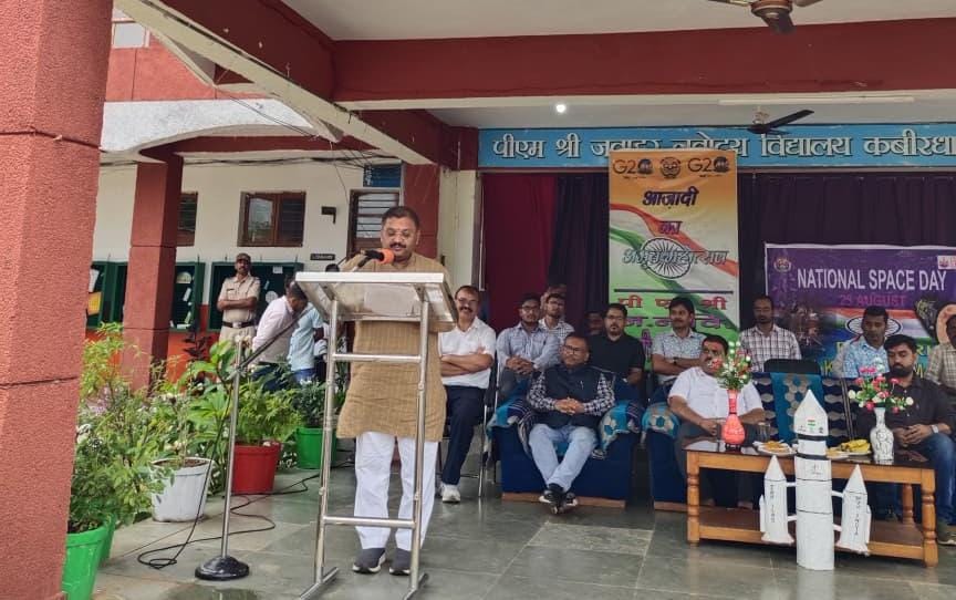 कार्यक्रम का उद्घाटन सांसद श्री संतोष पांडेय (राजनांदगांव लोकसभा क्षेत्र) ने किया। विद्यालय के प्राचार्य नंदकिशोर लांजेवार ने स्वागत भाषण में भारत की अंतरिक्ष यात्रा, विशेषकर चंद्रयान की सफल सॉफ्ट लैंडिंग की ऐतिहासिक उपलब्धि का उल्लेख किया। उन्होंने भारतीय वैज्ञानिकों की उपलब्धियों को छात्रों के लिए प्रेरणास्रोत बताते हुए उन्हें विज्ञान और शोध के क्षेत्र में आगे बढ़ने के लिए प्रोत्साहित किया।