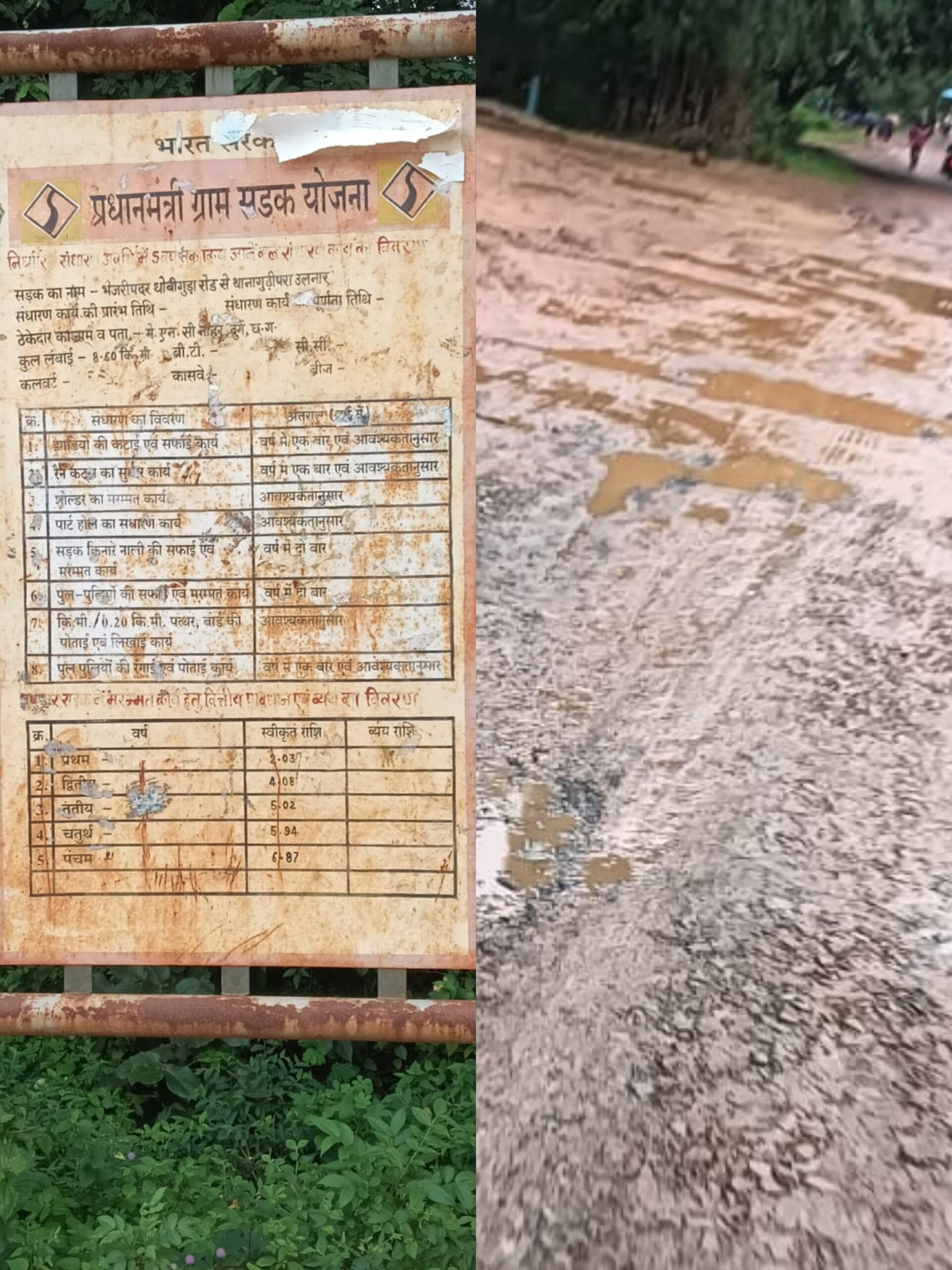 बस्तर जिले के बकावंड विकासखंड में प्रधानमंत्री ग्राम सड़क योजना के तहत जितनी भी सड़कें बनाई गई हैं, उन सभी सड़कों का बेड़ागर्क हो गया है। कहीं सड़क का आधा अधूरा निर्माण किया गया है, तो कहीं डामरीकरण का कार्य ही नहीं कराया गया है। सिर्फ मिट्टी पर मुरुम डालकर उस पर रोड रोलर चलवा दिया गया है। पहली बरसात भी ये सड़कें नहीं झेल पाईं हैं। आज ये तमाम सड़कें कीचड़ और गड्ढों से लबरेज नजर आ रही हैं। ऎसी बदहाल सड़कों पर पैदल चलना भी दुश्वार हो गया है। सायकल, बाईक और कारें भीइन सड़कों पर नहीं चल पातीं। आपात स्थिति में गांवों तक एंबुलेंस भी नहीं पहुंच पा रही हैं। मरीजों की जान खतरे में पड़ी रहती है। वहीं विद्यार्थियों का स्कूल पहुंचना भी मुश्किल हो गया है। तारापुर की सड़कों का हाल हम पहले ही बता चुके हैं। इसकी खबर प्रकाशित होने पर अधिकारियों और ठेकेदार ने मरम्मत के नाम पर सिर्फ लीपापोती ही की है। अब बकावंड ब्लॉक के कोलावल की सड़क की भी बदहाली की खबर आई है। यह सड़क करपावंड तालाब के पास इस कदर टूट चुकी है कि रोजाना सफर करने वाले लोग इसे सड़क को अब सड़क नहीं गड्ढों भरी पगडंडी कहने लगे हैं। बरसात का पानी गड्ढों में भर गया है और राहगीरों के लिए यह रास्ता जोखिम भरा हो गया है। गांव के बुजुर्ग बताते हैं कि बरसात में तालाब का पानी सड़क तक पहुंच जाता है और सड़क डूब जाती है। और तब इस रास्ते पर चलना मौत को दावत देने जैसा लगता है। वहीं स्कूल जाने वाले बच्चे और मरीज सबसे ज़्यादा परेशान हैं। साइकिल सवार बच्चे अक्सर कीचड़ और पानी में फिसल जाते हैं, और बीमारों को ले जाती एंबुलेंस गड्ढों में झूलते-झूलते देर तक फंसी रहती है।ग्रामीण मिल जुलकर धक्का लगाते हैं तब कहीं जाकर एंबुलेंस अपने गंतव्य की ओर बढ़ पाती है। यह सड़क न केवल कोलावल और करपावंड को, बल्कि आसपास के कई गांवों को भी जोड़ने वाली जीवनरेखा है। किसानों की फसलें मंडी तक पहुंचाने में बाधा आ रही है और आम लोगों का रोजमर्रा का जीवन भी प्रभावित हो रहा है।