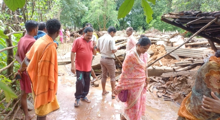 मूसलाधार बारिश ने भैरमगढ़ ब्लॉक में मचाई तबाही, तीन गांव के लगभग 23 घरों के लोगों को किया बेघर.