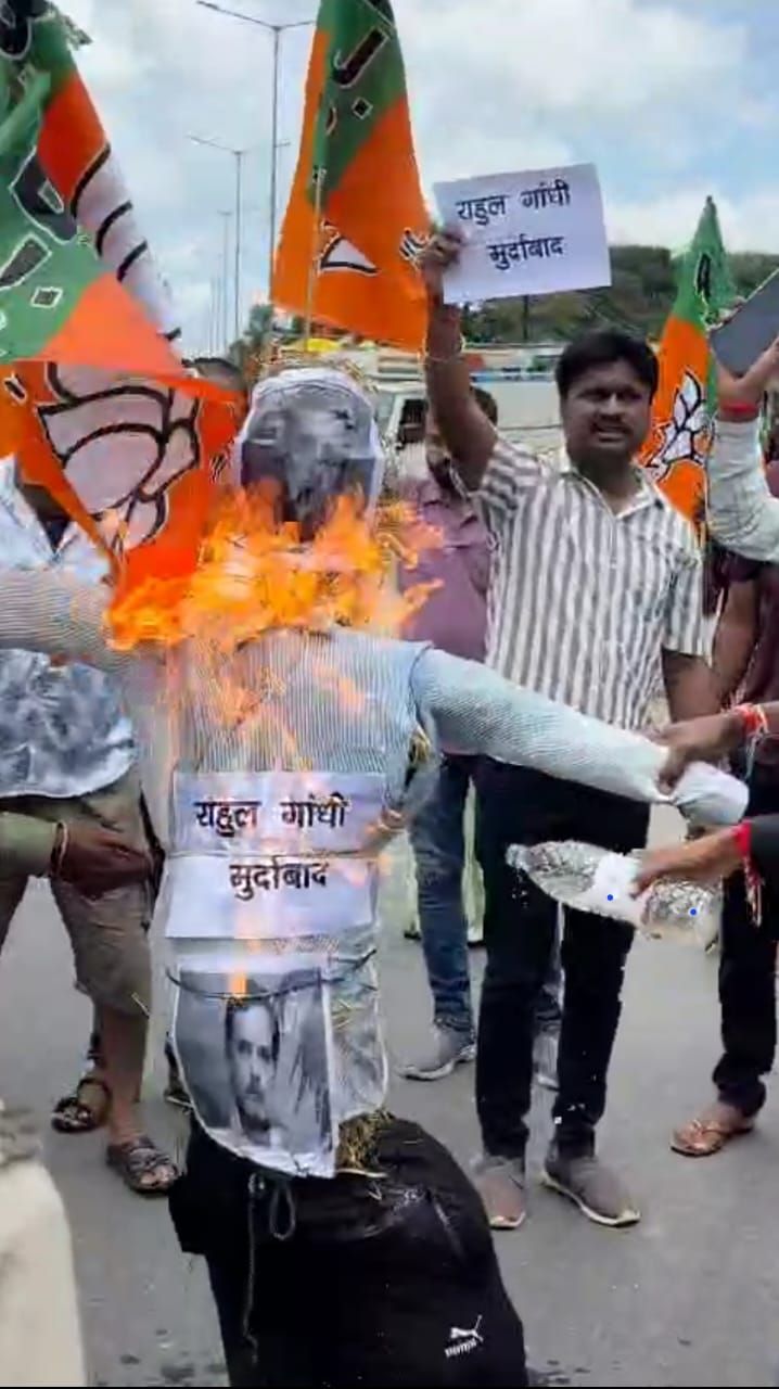 जगदलपुर। बिहार में राहुल गांधी की वोट अधिकार यात्रा ने पुरे देश को शर्मिंदा किया है। यह कहना भानपुरी मंडल के भाजपा-भाजयुमो कार्यकर्ताओं का का है। बीते दिनों दरभंगा से सामने आया एक विवादित वीडियो में मंच से प्रधानमंत्री नरेंद्र मोदी के लिए आपत्तिजनक भाषा का इस्तेमाल किया गया, जिससे सियासी माहौल गरमा गया है। कांग्रेस के इस कार्यक्रम में हुई इस घटना ने राजनीतिक बहस को नया मोड़ दे दिया है, वहीं भाजयुमो भानपुरी मंडल ने राहुल गांधी से देश से माफी मांगने की मांग की है। वही भानपुरी मंडल के भाजयुमो कार्यकर्ताओं ने बड़ी संख्या में एकत्र हो कर विरोध स्वरुप राहुल गाँधी का पुतला दहन किया।