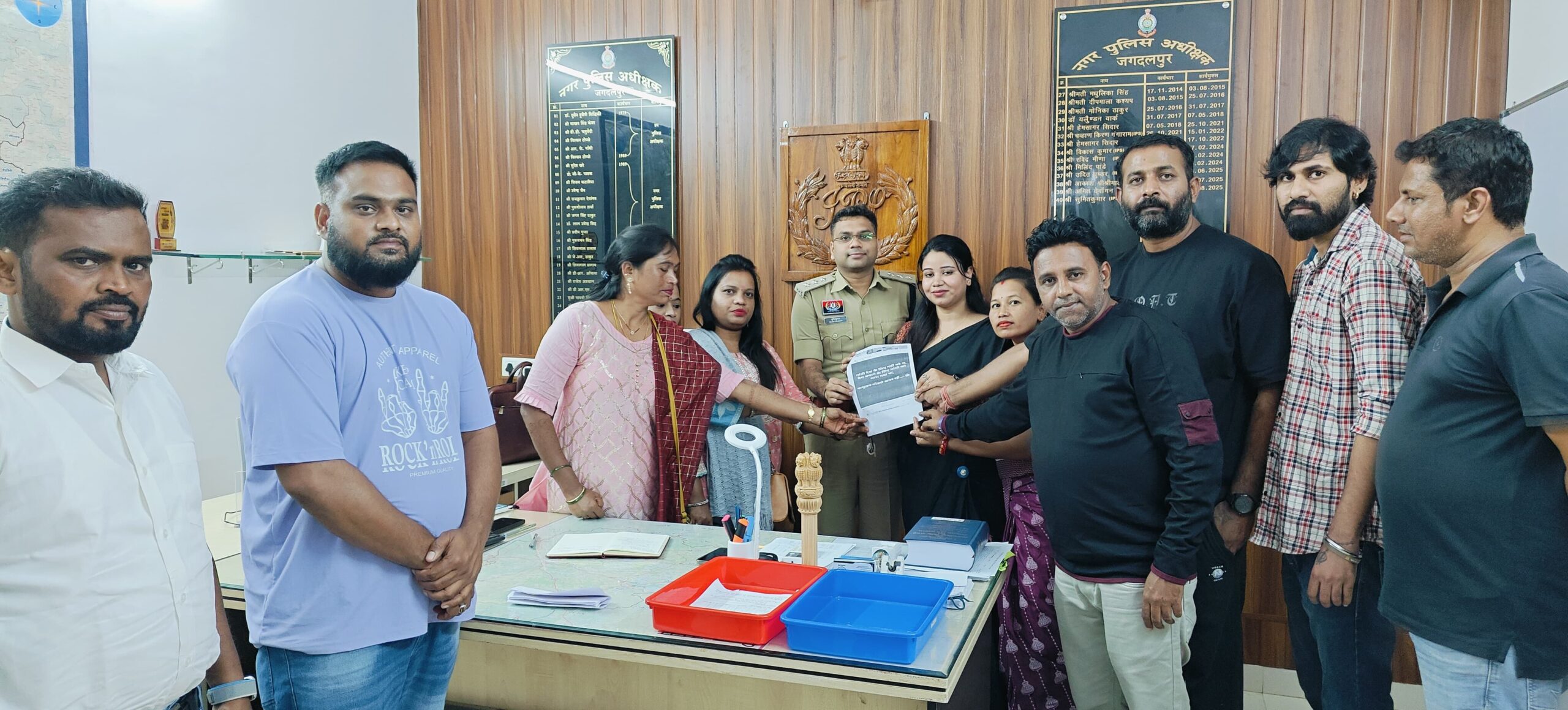 जगदलपुर :- आज बस्तर जिला कांग्रेस कमेटी शहर अध्यक्ष सुशील मौर्य जी के निर्देशानुसार बस्तर जिला कांग्रेस कमेटी के पदाधिकारी व कार्यकर्ताओं ने सोशल मीडिया प्लेटफार्मफेसबुक पर राष्ट्रपिता महात्मा गांधी जी पर आपत्तिजनक पोस्ट व सामाजिक सौहार्द बिगाड़ने को लेकर अजय बैरागी के खिलाफ उचित कार्यवाही हेतु अतिरिक्त पुलिस अधीक्षक को ज्ञापन सौंपा …