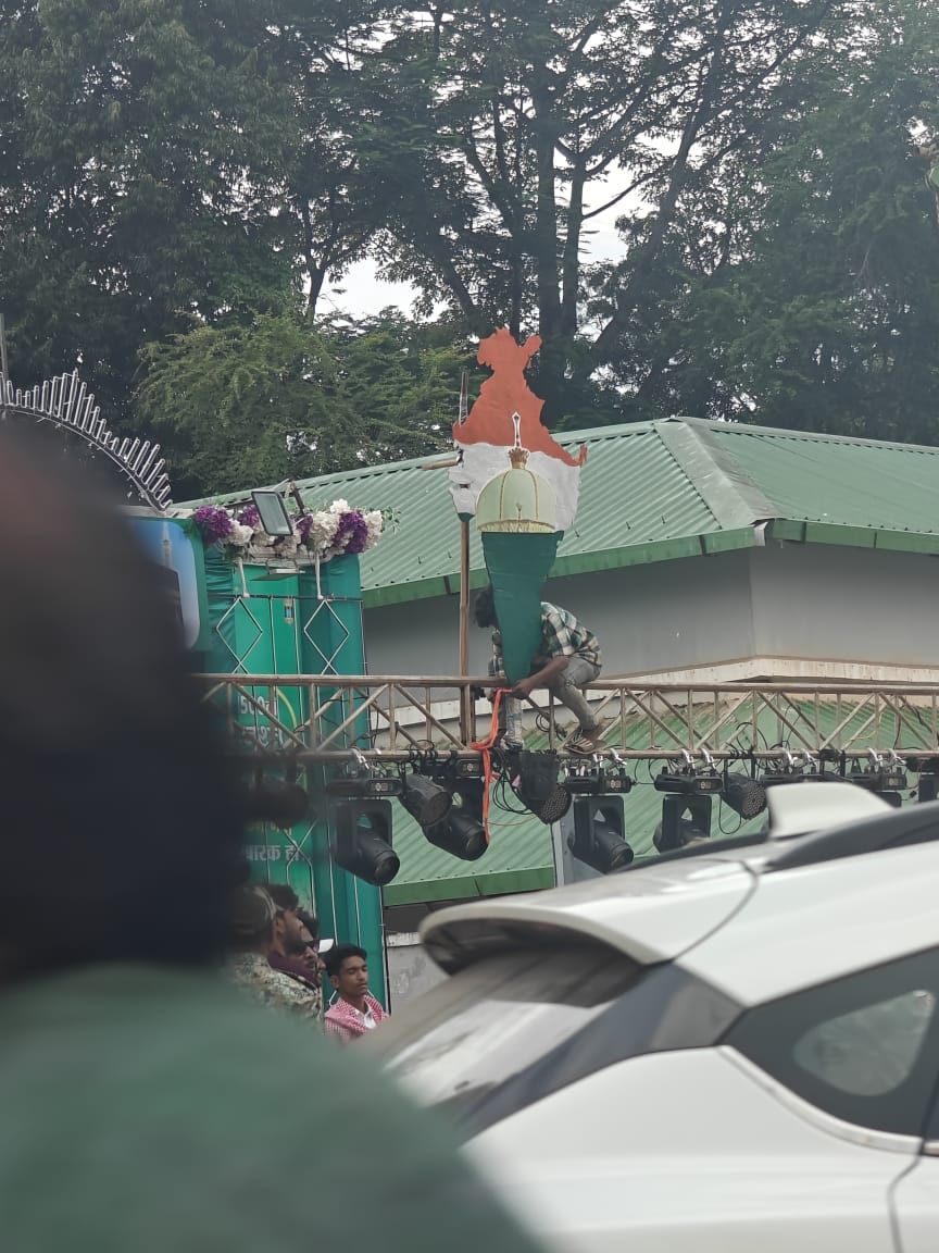 ईद मिलादुन्नबी के मौके पर आज जगदलपुर के मिताली चौक पर मुस्लिम समुदाय के कुछ लोगों ने भारत के नक्शे के बीचों बीच मस्जिद दर्शाते हुए होडिंग लगाया गया था। यह देख हिंदू संगठन के लोग आक्रोशित हो उठे और उन्होंने इस कृत्य का विरोध जताना शुरू कर दिया। हालात बिगड़ते देख पुलिस के अधिकारी और जवान मौके पर पहुंचे। पुलिस जवानों ने तत्परता दिखाते हुए उस होर्डिंग को हटा दिया। अभी किसी के खिलाफ केस दर्ज नहीं किया गया है। पुलिस मामले की जांच कर रही है।