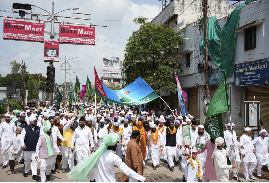 जगदलपुर। ईद मिलादुन्नबी का पर्व जगदलपुर में पूरे हर्षोल्लास और श्रद्धा के साथ मनाया गया। 5 सितंबर तड़के 4:30 बजे मुए मुबारक शरीफ के ग़ुस्ल से हुआ। इसके पश्चात सुबह 10:00 बजे जामा मस्जिद, जगदलपुर से “जुलूस-ए-मोहम्मदी” निकला, जो शहर के प्रमुख चौक-चौराहों से होते हुए पुनः जामा मस्जिद पहुँचा।