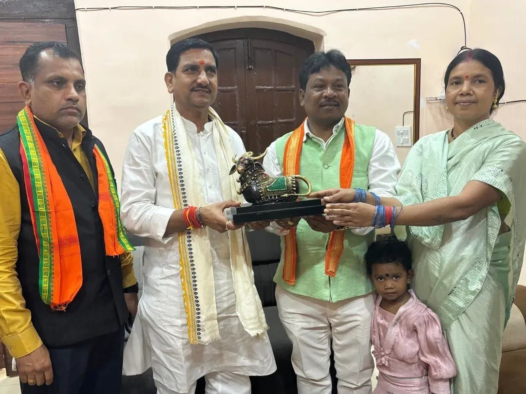जगदलपुर। आज जगदलपुर आगमन पर केंद्रीय राज्य मंत्री तोखन साहू का जगदलपुर एयरपोर्ट पर भव्य स्वागत किया गया। तत्पश्चात् माननीय मंत्री का बस्तर सांसद निवास में अभिनंदन किया गया,जहाँ बस्तर सांसद महेश कश्यप, उनकी धर्मपत्नी चंपादेवी कश्यप एवं भाजपा जिला अध्यक्ष वेद प्रकाश पांडे ने उनका पुष्पगुच्छ भेंट कर स्वागत किया। इस अवसर पर विश्व प्रसिद्ध बस्तर दशहरा में सम्मिलित होने हेतु आत्मीय आमंत्रण प्रदान किया गया तथा बस्तर की गौरवशाली संस्कृति का प्रतीक ‘नंदी कला कृति’ स्मृति-चिह्न स्वरूप भेंट की गई।