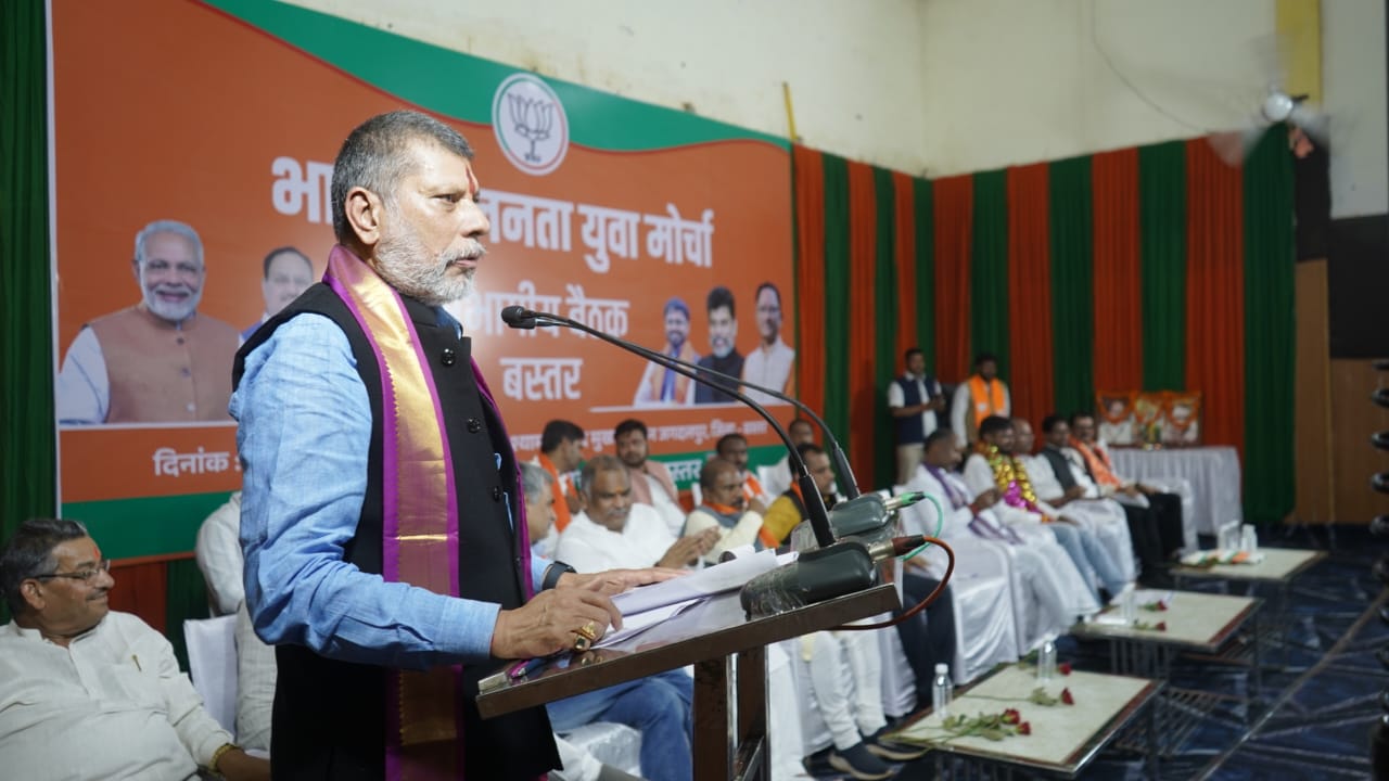 जगदलपुर :- भारतीय जनता युवा मोर्चा की महत्वपूर्ण संभागीय बैठक आज शनिवार को पं. श्यामा प्रसाद मुखर्जी सभागार टाउन हॉल में आयोजित हुई। जिसमें भाजपा प्रदेश अध्यक्ष किरण सिंह देव व प्रदेश महामंत्री संगठन पवन साय विशेष रूप से शामिल हुये। जिन्होंने संभागीय बैठक में नवनियुक्त भाजयुमो प्रदेश अध्यक्ष राहुल टिकरिया को बधाई देते हुये बस्तर अंचल के सात जिलों आये भाजयुमो कार्यकर्ताओं को मार्गदर्शन दिया और आगामी कार्य योजनाओं से अवगत कराकर ज़मीनी स्तर पर उन्हें मूर्त रुप देने कार्य करने कहा।