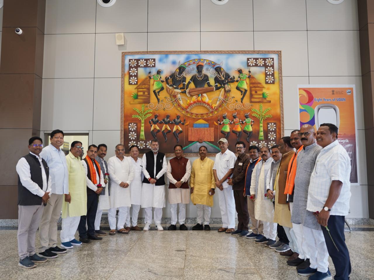 हवाई अड्डे पर वन मंत्री श्री केदार कश्यप, ब्रेवरेज कॉर्पोरेशन के अध्यक्ष श्री श्रीनिवास राव मद्दी,जगदलपुर विधायक श्री किरण सिंह देव, चित्रकोट विधायक श्री विनायक गोयल, जगदलपुर के महापौर श्री संजय पांडेय, पूर्व सांसद श्री दिनेश कश्यप,पूर्व विधायक श्री संतोष बाफना, महेश गागड़ा, डॉ सुभाऊ कश्यप, श्री लच्छू कश्यप, बैदूराम कश्यप सहित अन्य जनप्रतिनिधियों और कमिश्नर श्री डोमन सिंह, आईजी श्री सुंदर राज पी., कलेक्टर श्री हरिस एस, पुलिस अधीक्षक श्री शलभ सिन्हा, सीईओ जिला पंचायत श्री प्रतीक जैन ने स्वागत किया।